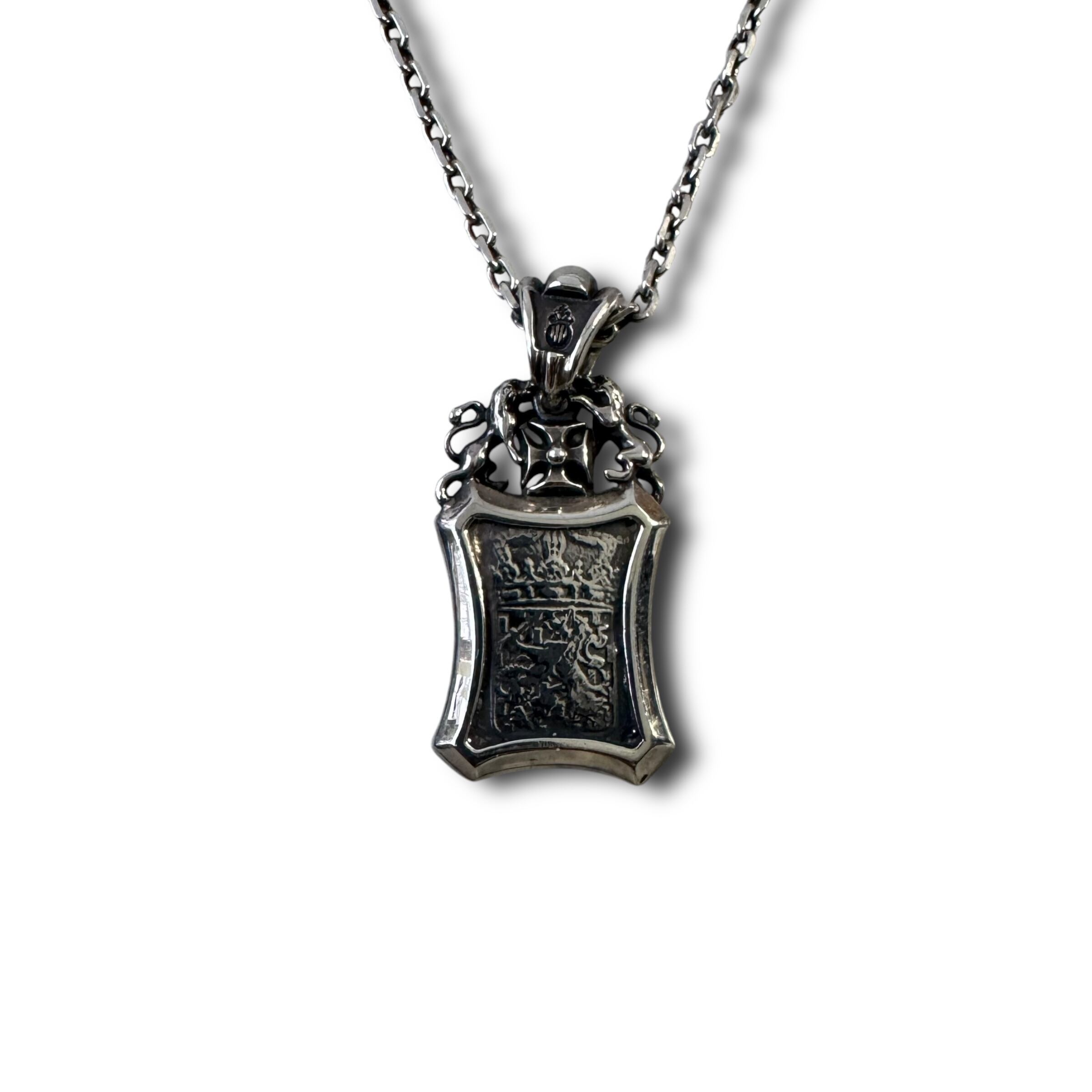 額縁の中にクロスがあり背景にオールドイングリッシュで英語が掘られており、額縁にはライオンのようなデザインとアイアンクロスがデザインされている細部までこだわられているデザイン‼️✨️