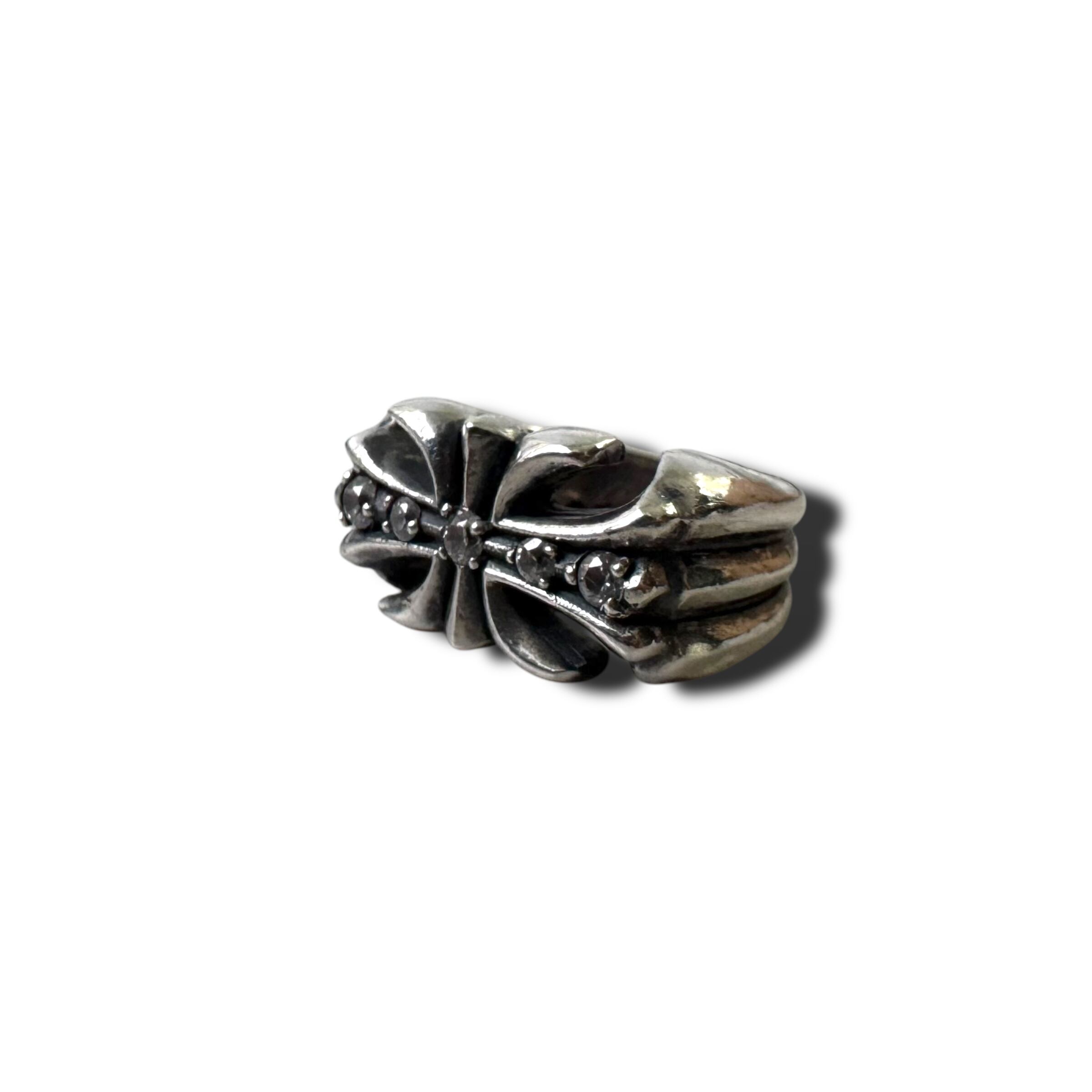 横長クロスにストーンが5つも埋め込まれたデザインシルバーリング✨️✨️