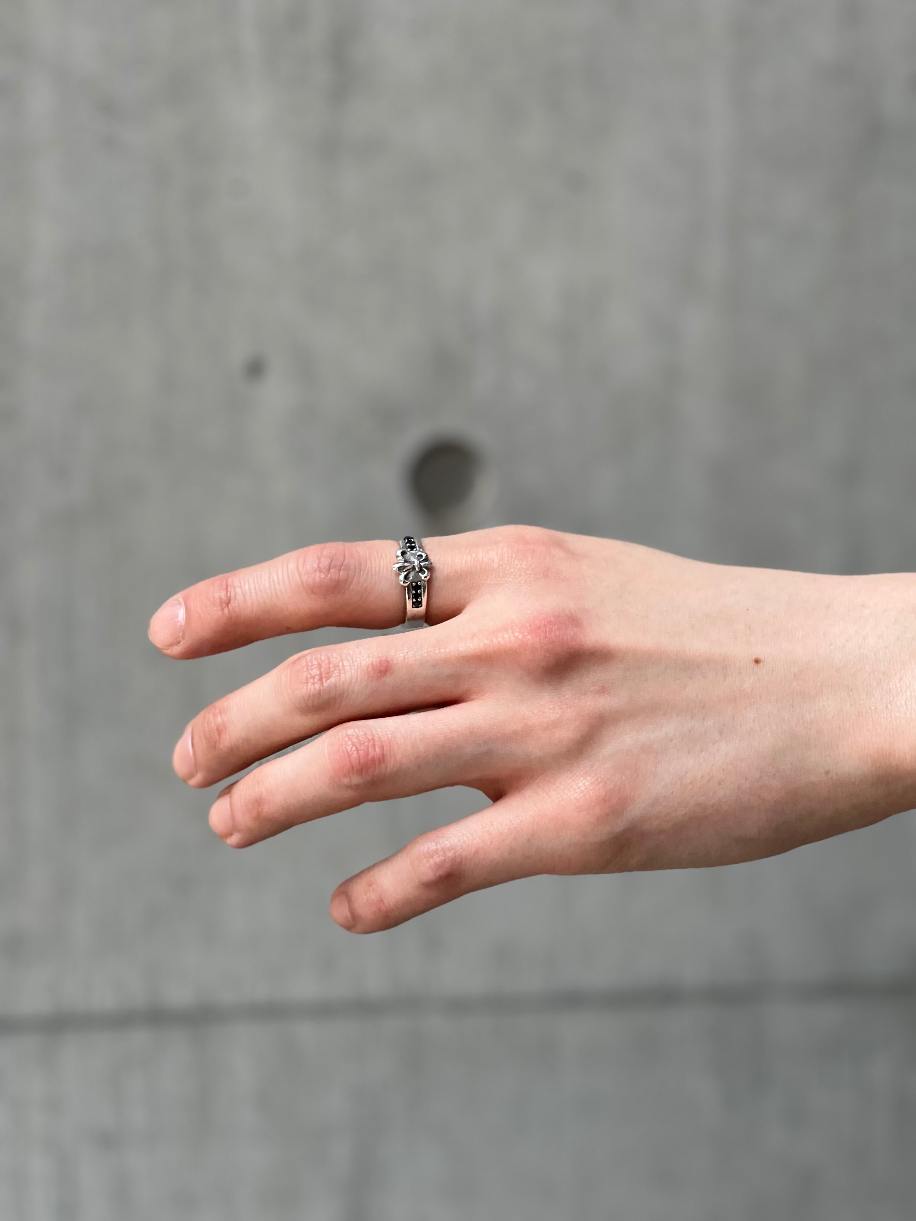 立体感ある彫刻的な雰囲気が高級感あり重厚感ある見た目、セットされたストーンとのバランスなど細部までパフォーマンス力の高いアイテム✨
