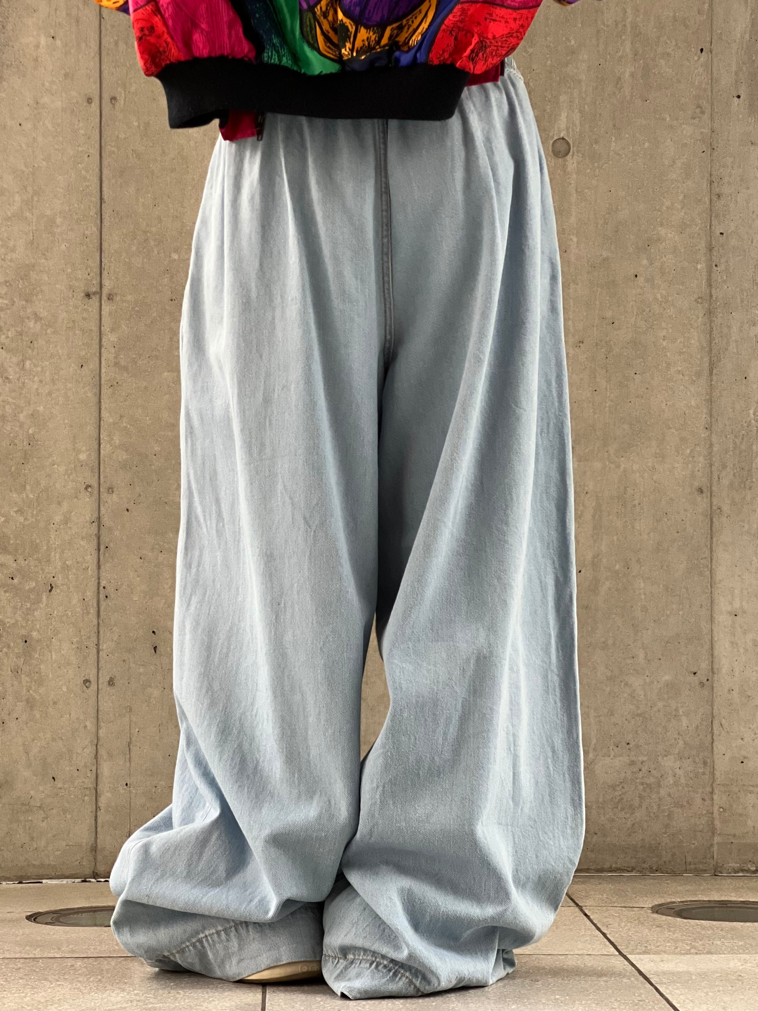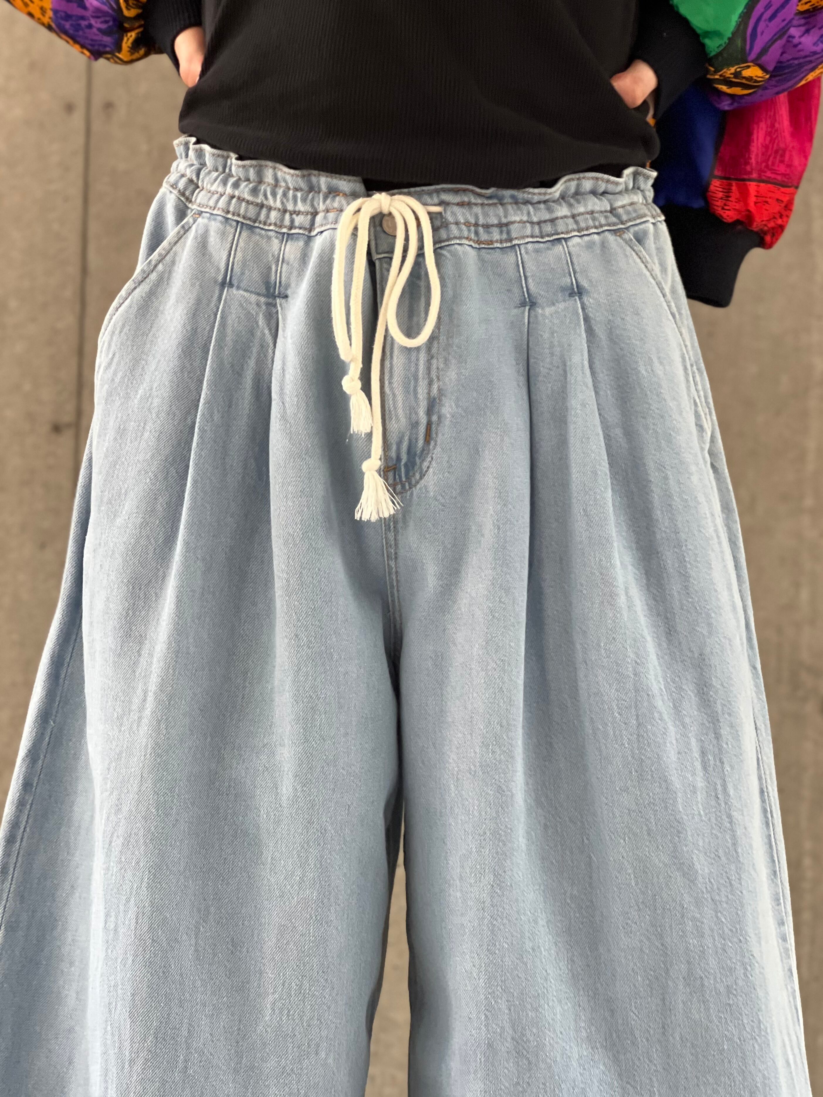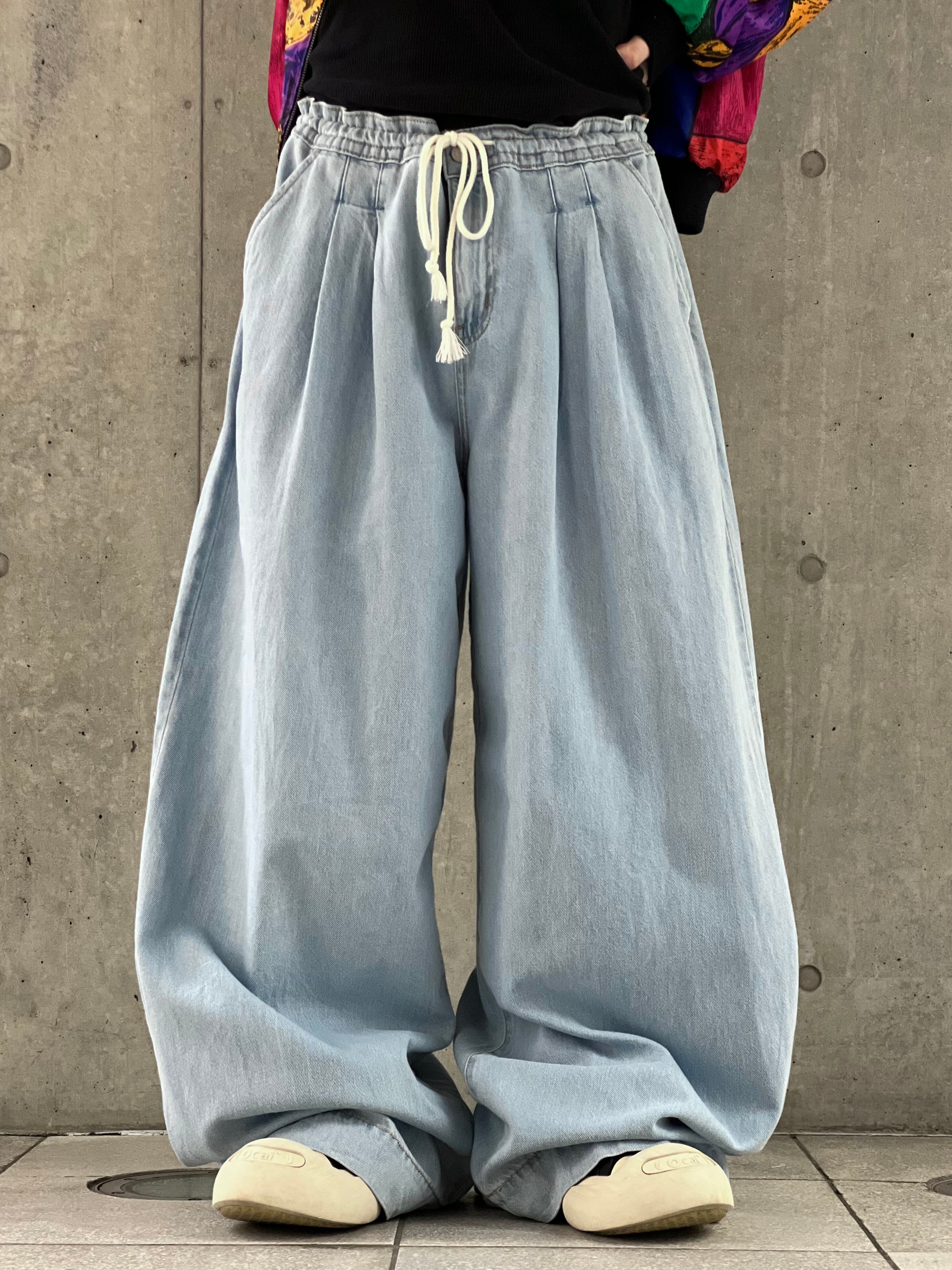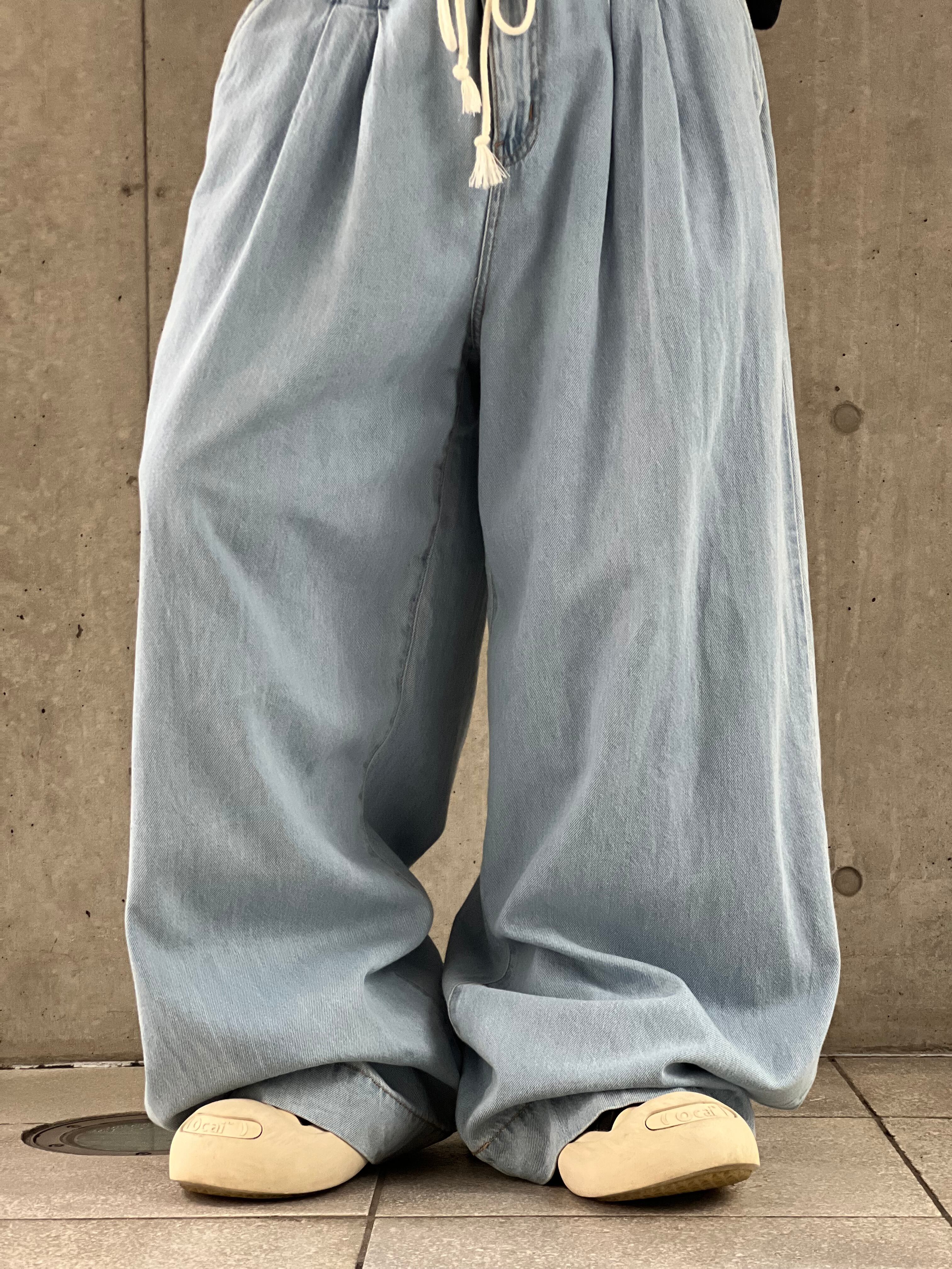 【wild fable】Two-pleat ultra baggy wide drawstring denim slacks