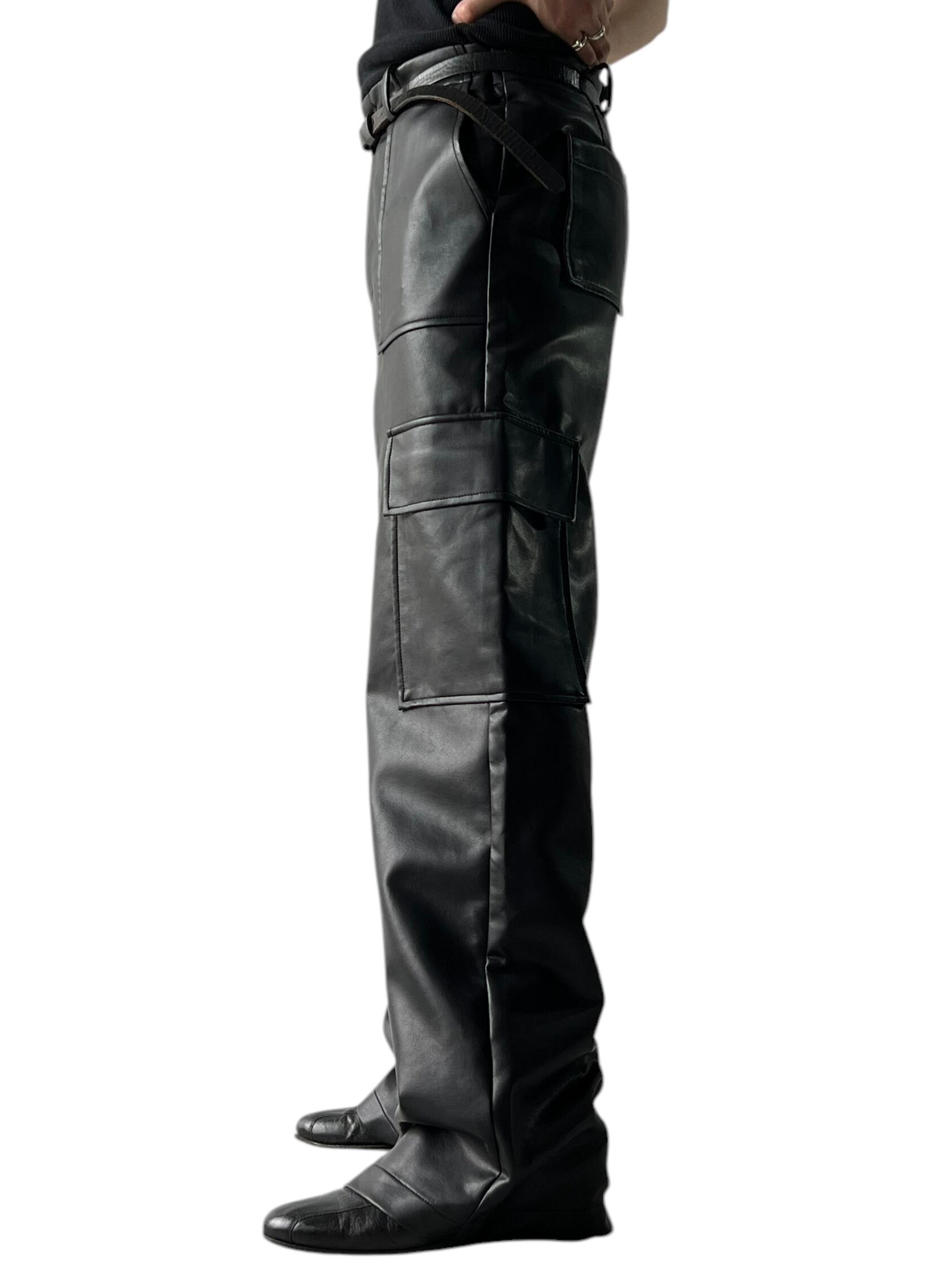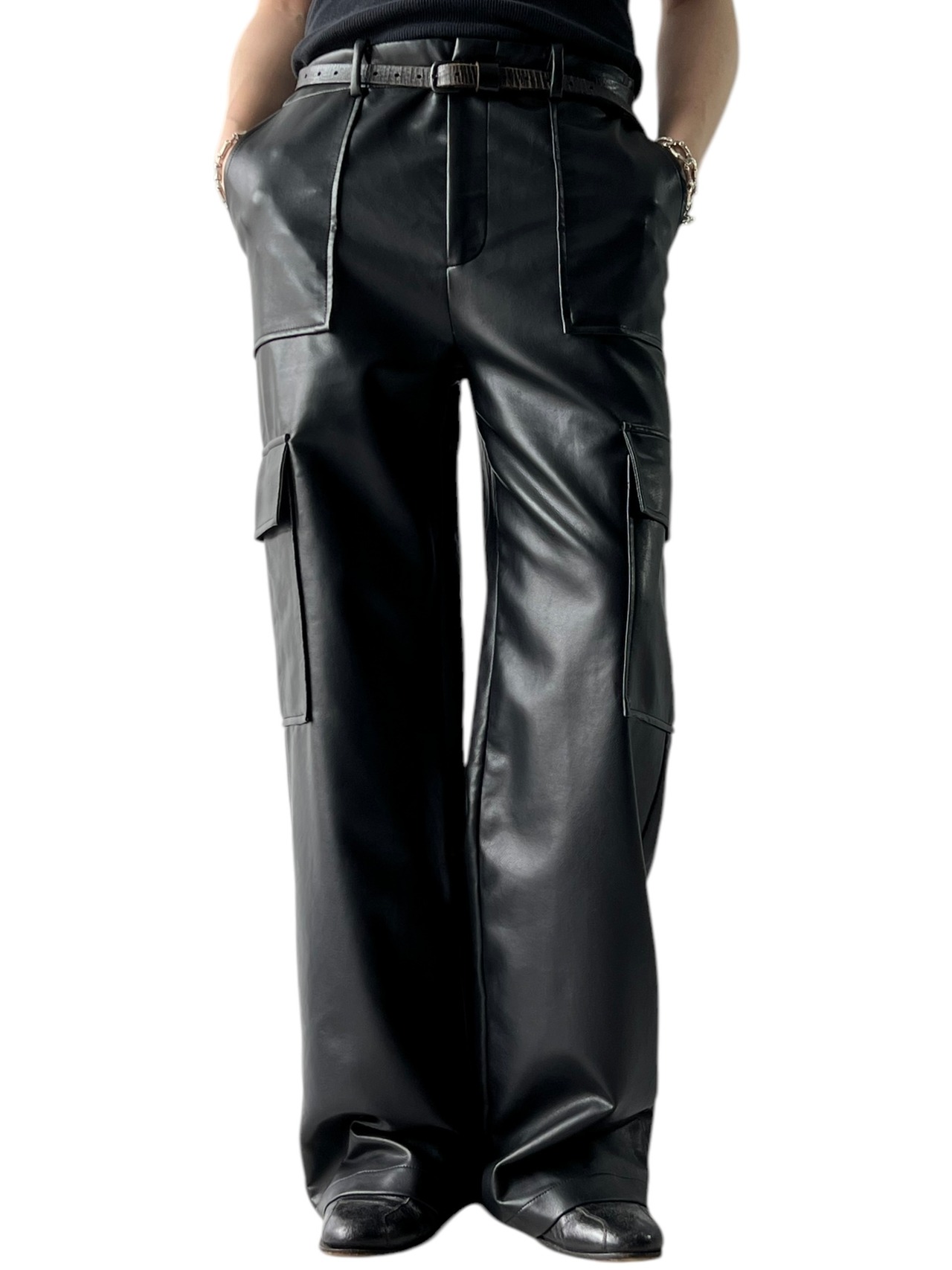 【WAYF】"Baker Cargo detail" wide straight silhouette PU Lather pants