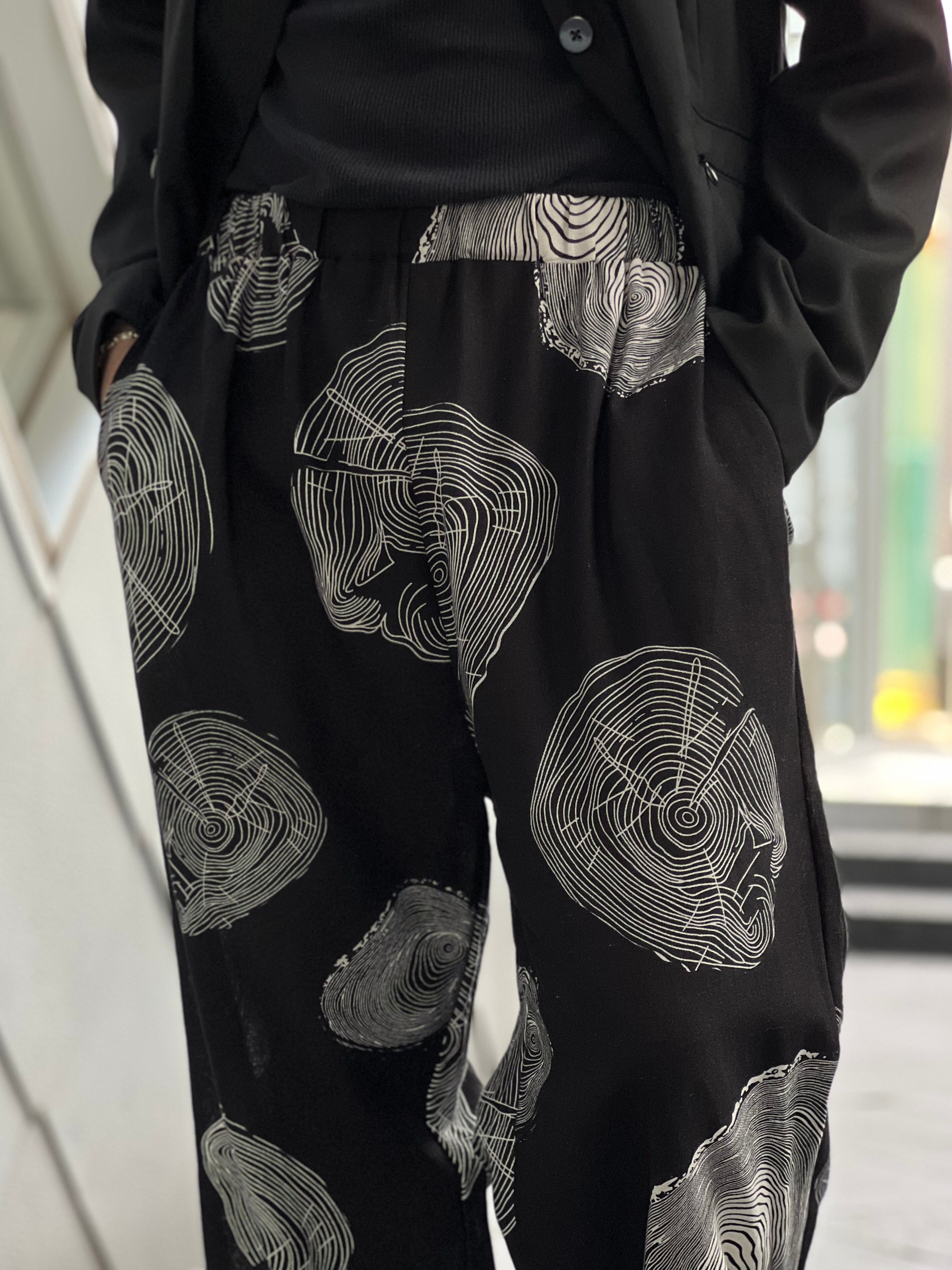 モードなニュアンスパターンがさり気ないデザインワイドパンツ❗️ ウエストはイージー仕様でとにかく楽ちん‼️