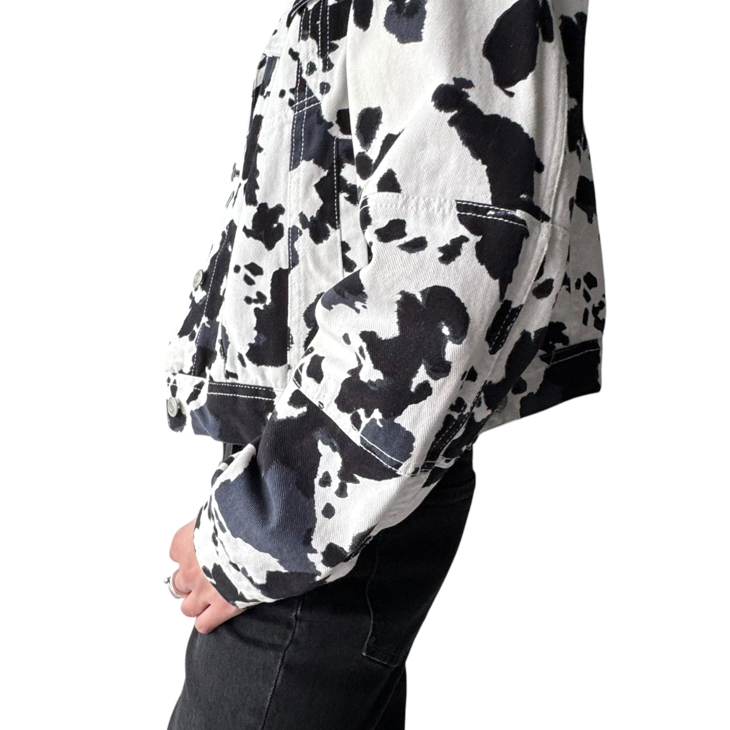 ♾peach love♾ cow patterned short length design tracker jacket sizeL