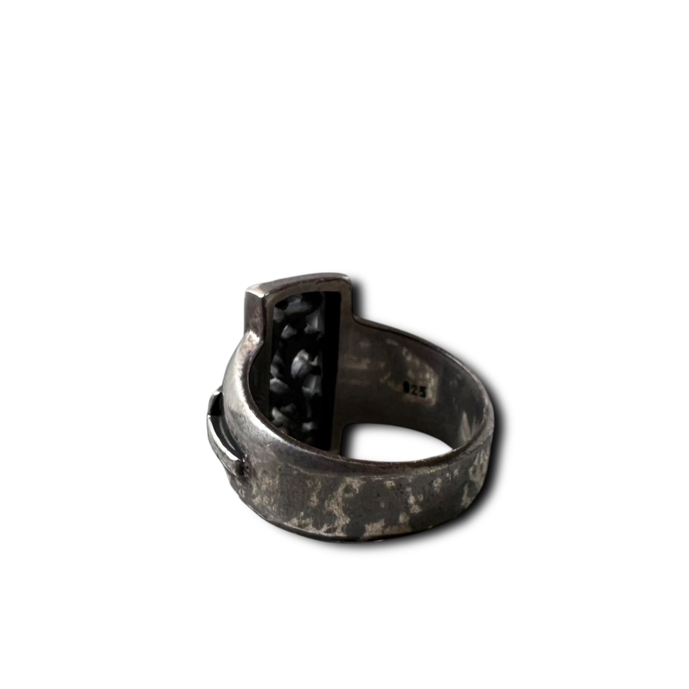 ♾ vtg sv jewelry♾ Arabesque pattern cross combination design ring size 17号 sv925 ・
