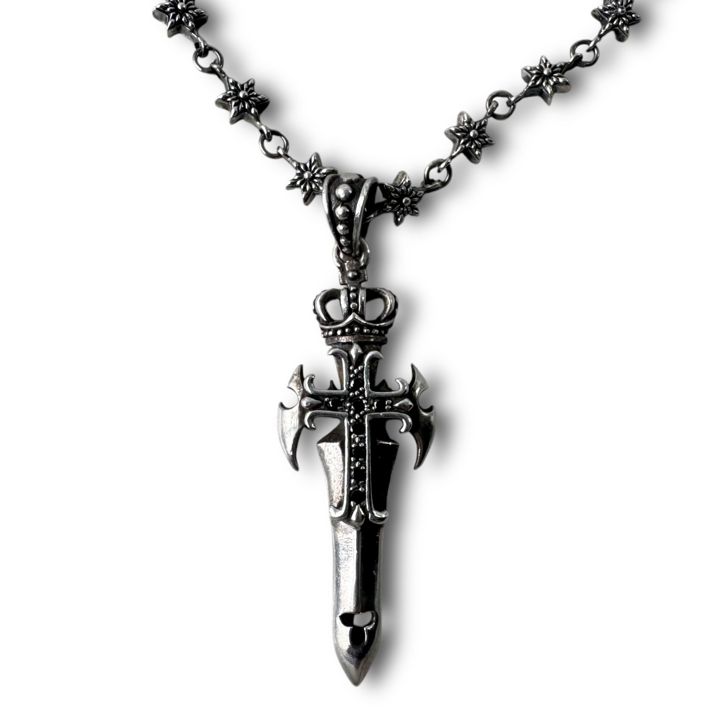 ドスペ。ダガーの上にクロスが設置された魅力的なデザインシルバーネックレス‼️✨️