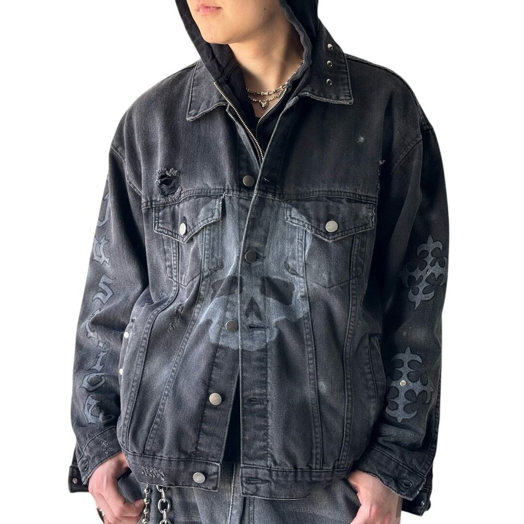 ♾remake design used♾ skull motif custom design denim tracker jacket