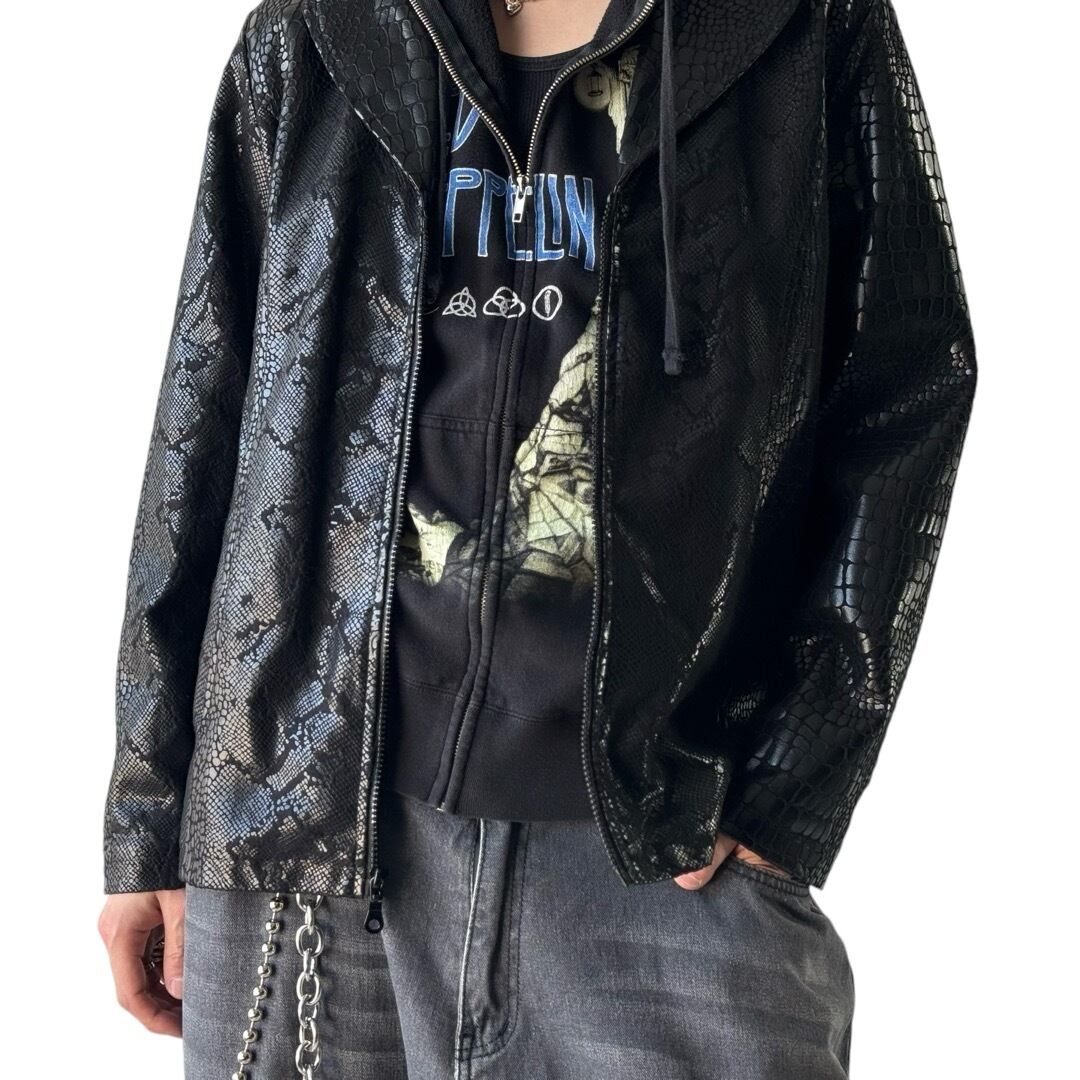 模様の大きさが様々なリアルなパイソン柄がモードでやんちゃな雰囲気を纏わせたデザインジップアップジャケットの入荷‼️