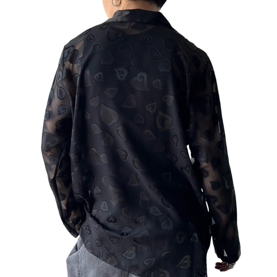 ♾Sophia♾ heart motif design sheer L/S shirt sizeLARGE/GRANDE