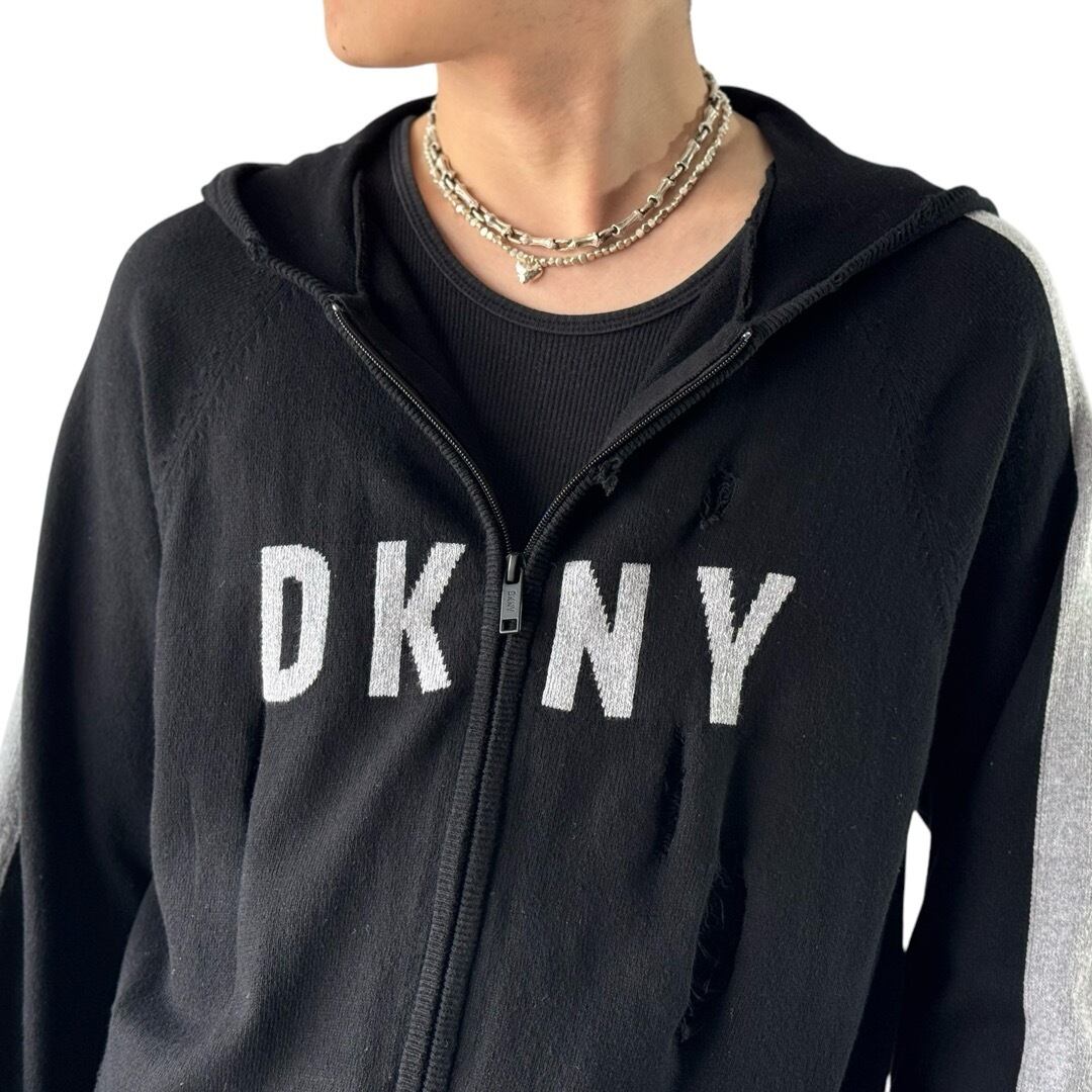 ♾ DKNY ♾ damage knit zip up line hoodie size M