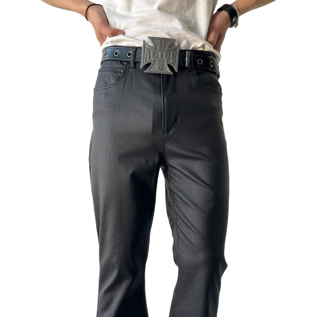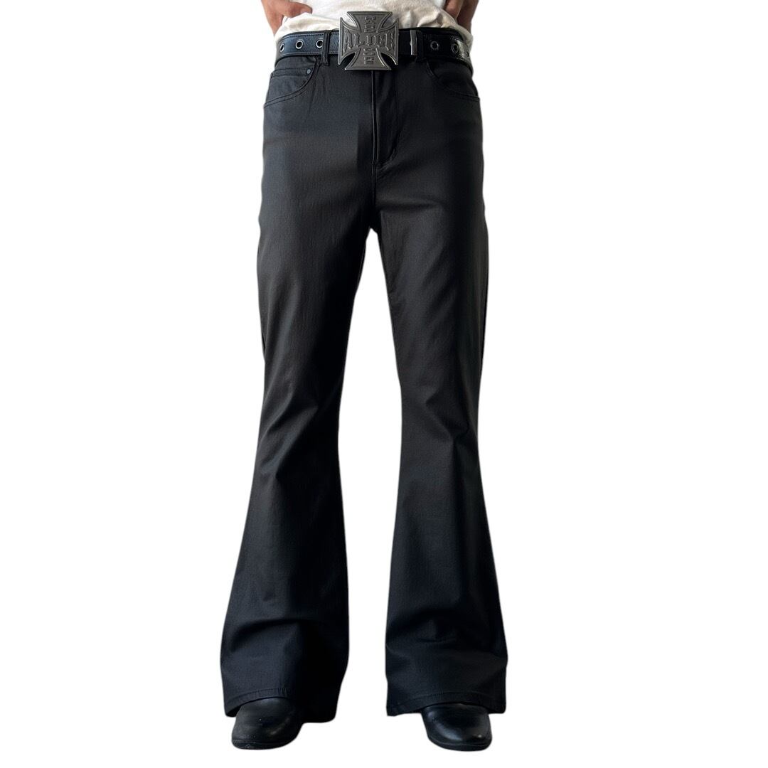 超ーシンプルなコーティングデザインブラックフレアパンツ◎