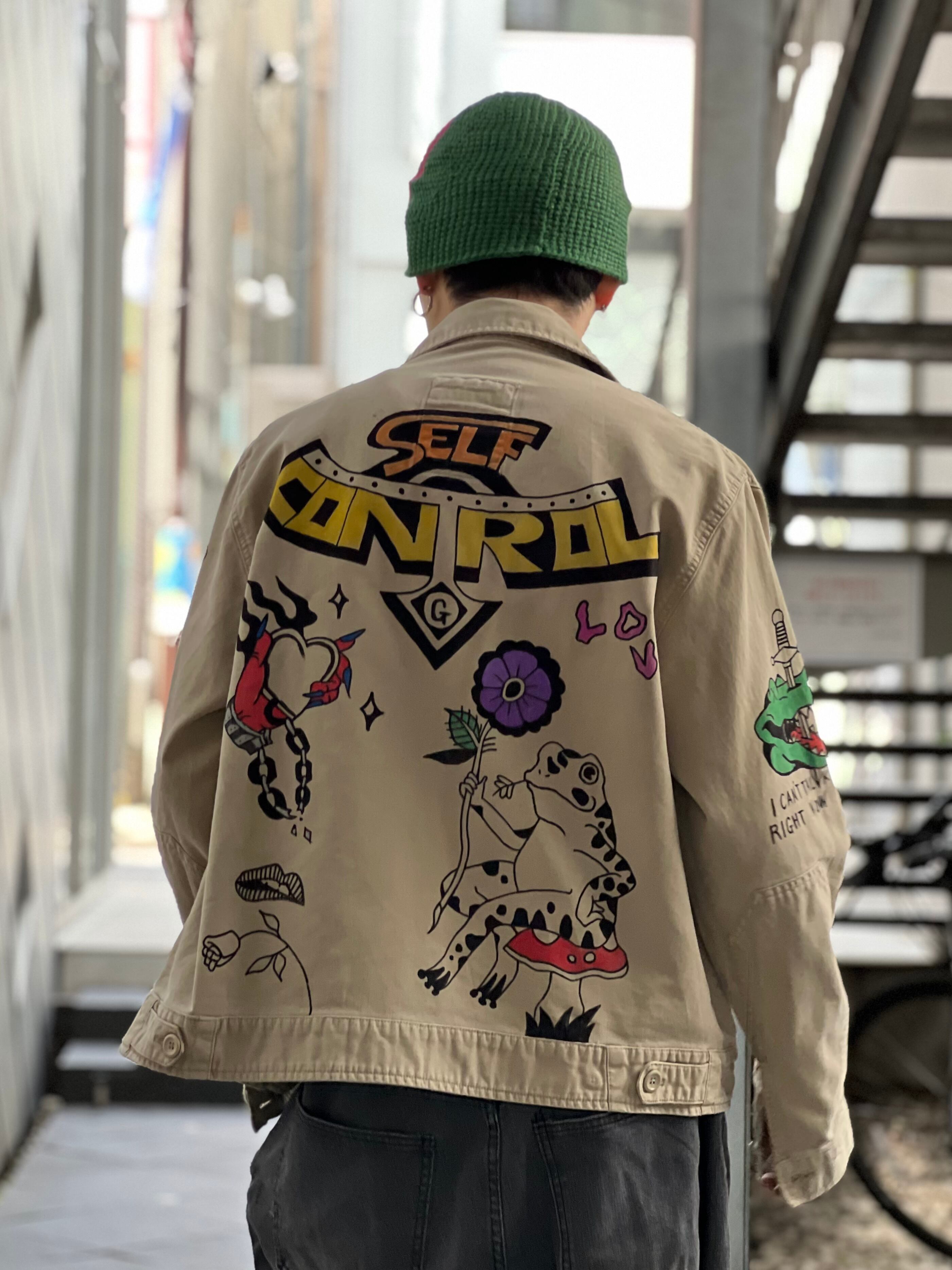 【OLD GAP】 hand Tattoo painted work zip up jacket