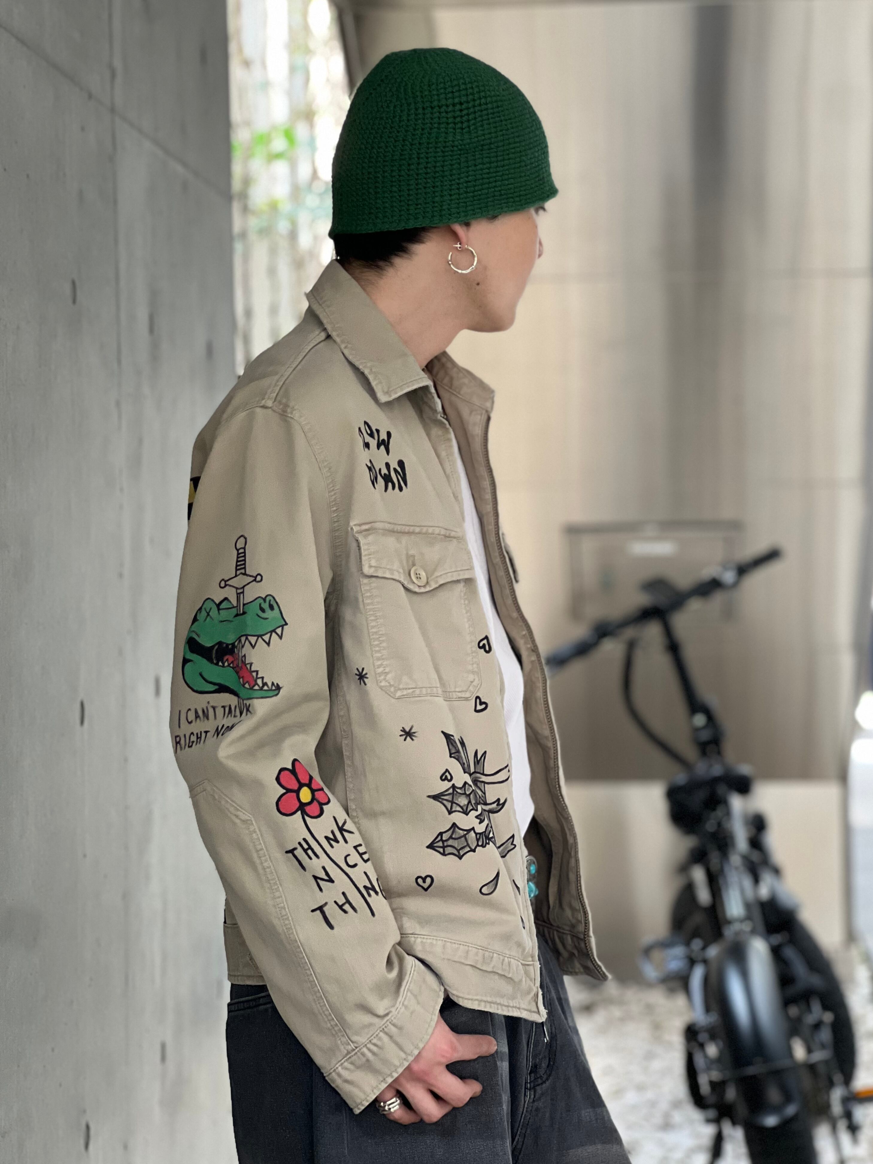 hand Tattoo painted work zip up jacket