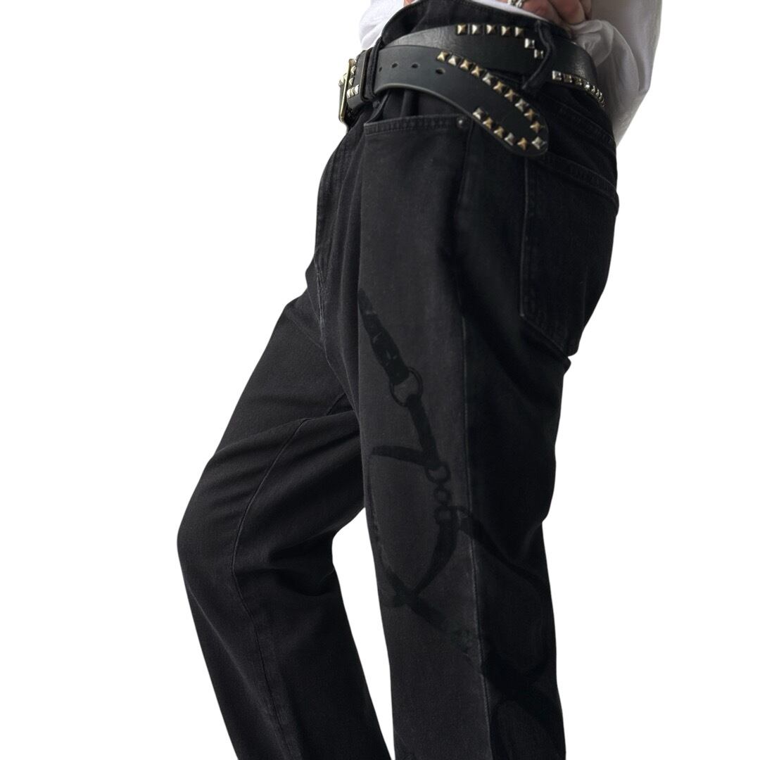 かなり綺麗なシルエットのブーツカットブラックデニムパンツ。
