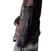 ♾double skull heads♾ design crushed thermal layered sleeve tee