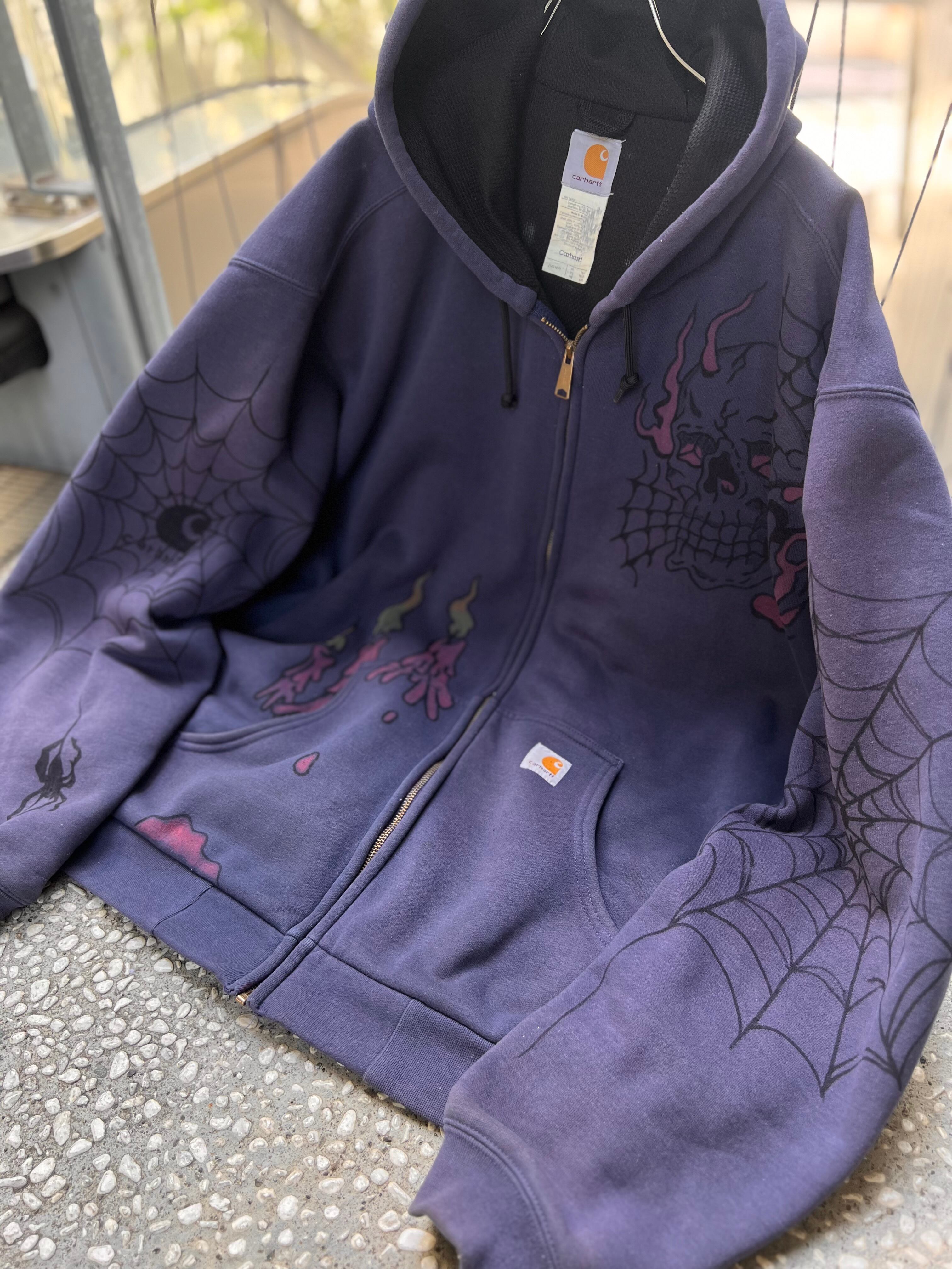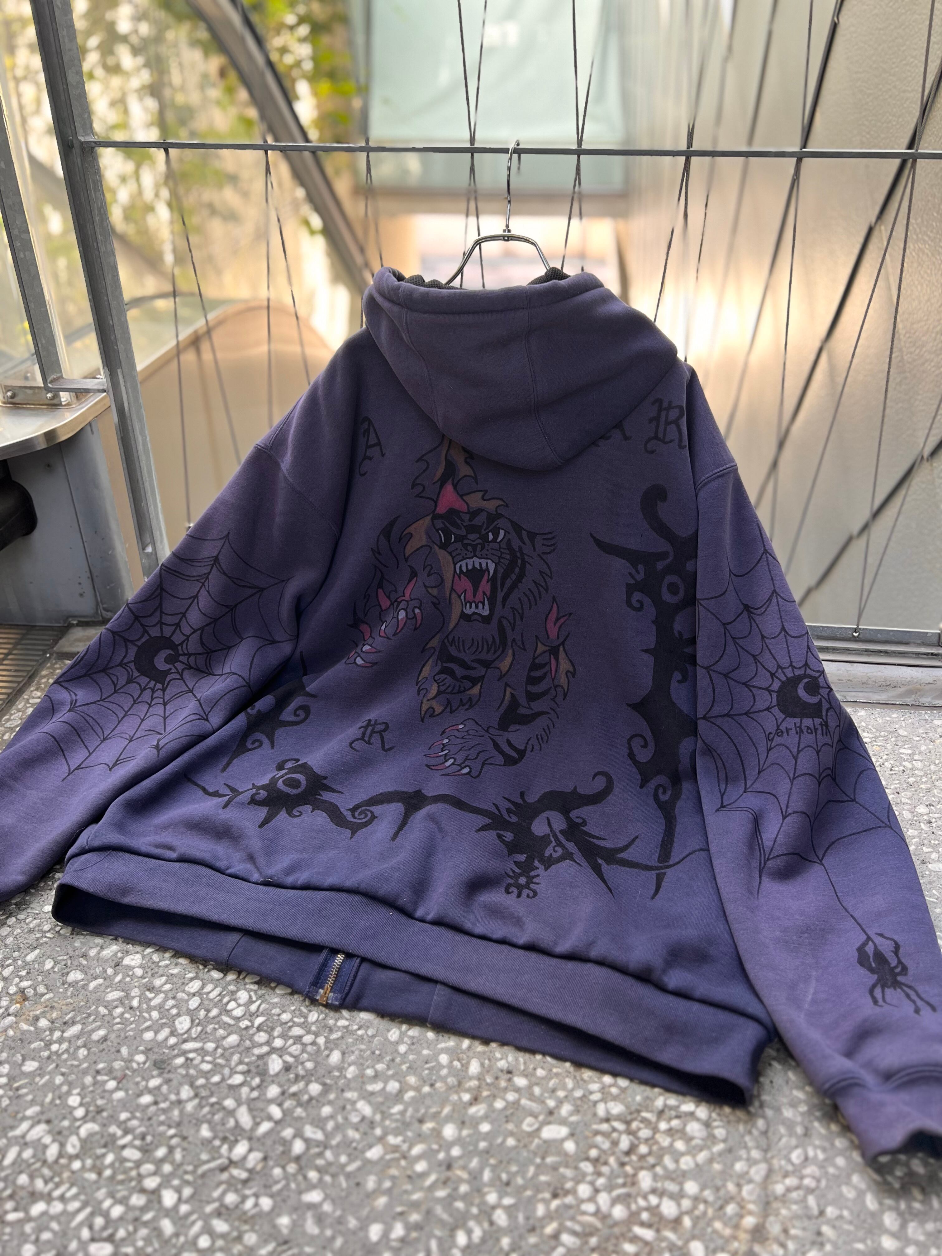 【old carhartt】 hand painted custom Sweat zip hoodie / size 2XL TALL