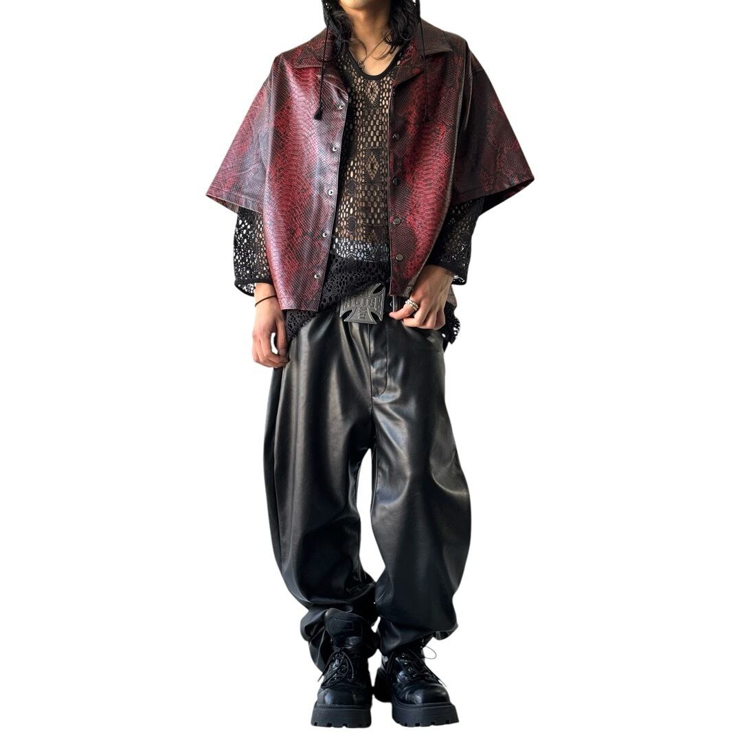 python patterned embossing design buggy silhouette pvc leather s/s shirt