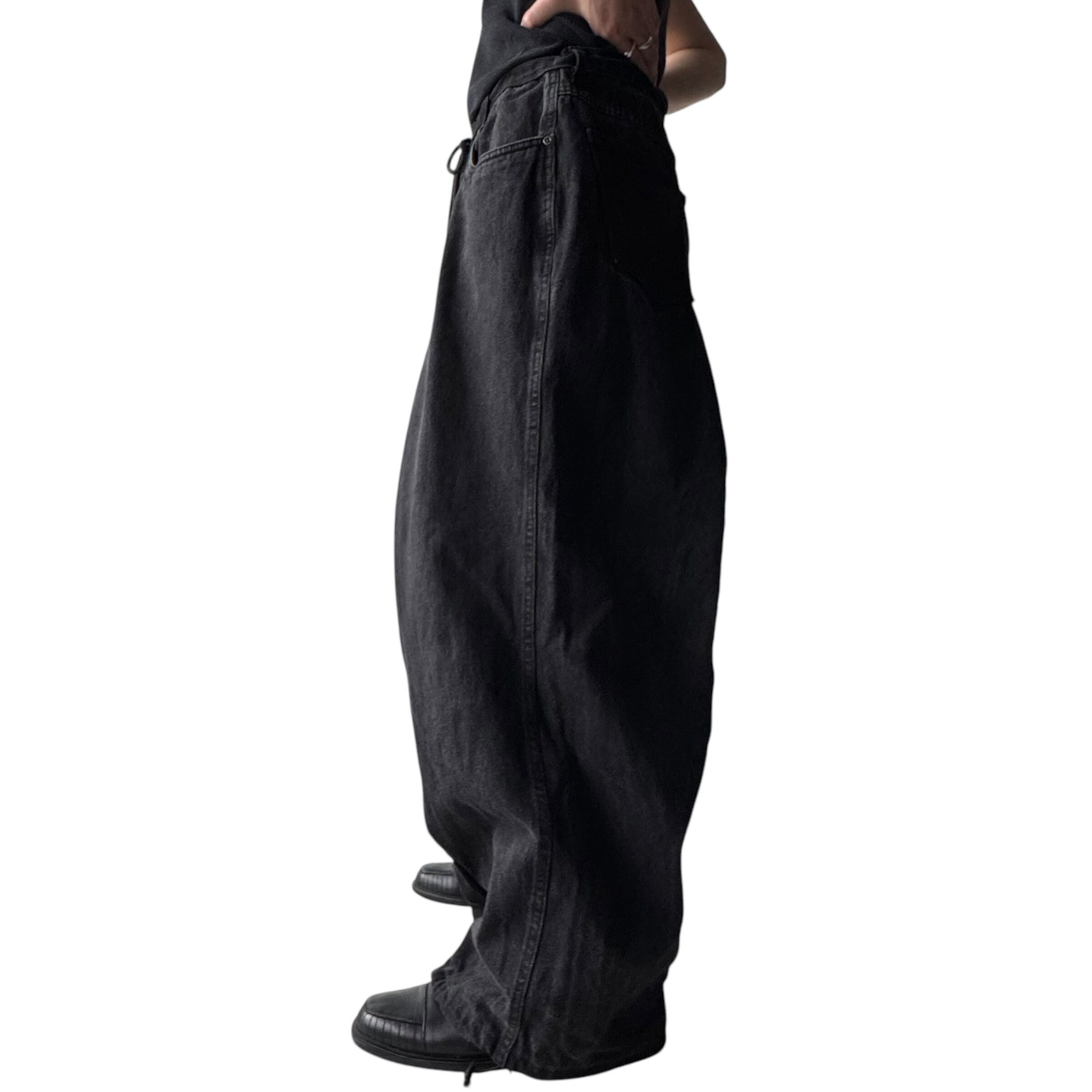 フェード感グッドなブラックデニムと色褪せ具合完璧な黒デニムを繋げて構築された究極ハーフアンドハーフ‼️