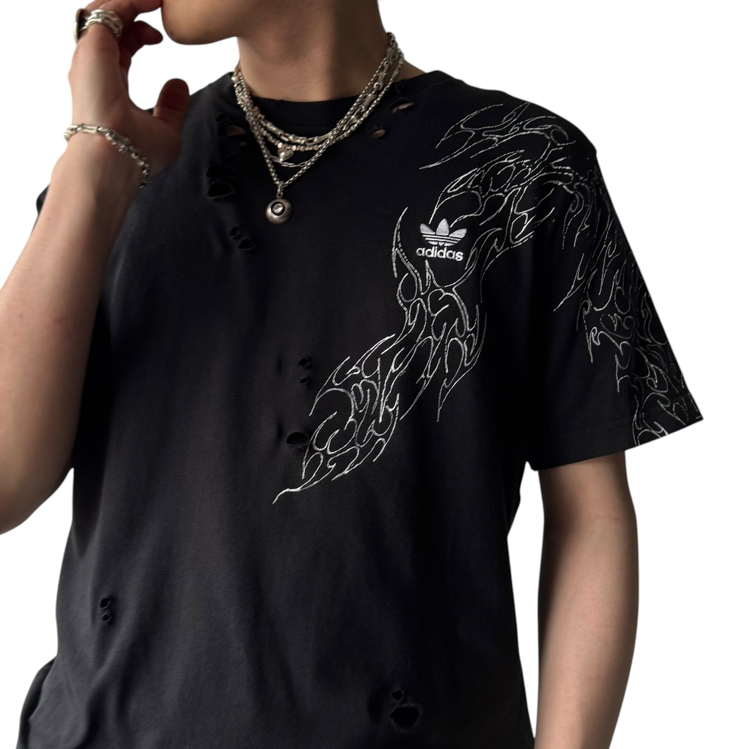 ️フロントから袖、背面にかけてトライバル柄のペイント加工が施されたカスタムデザインがオンリーなTeeの入荷‼️