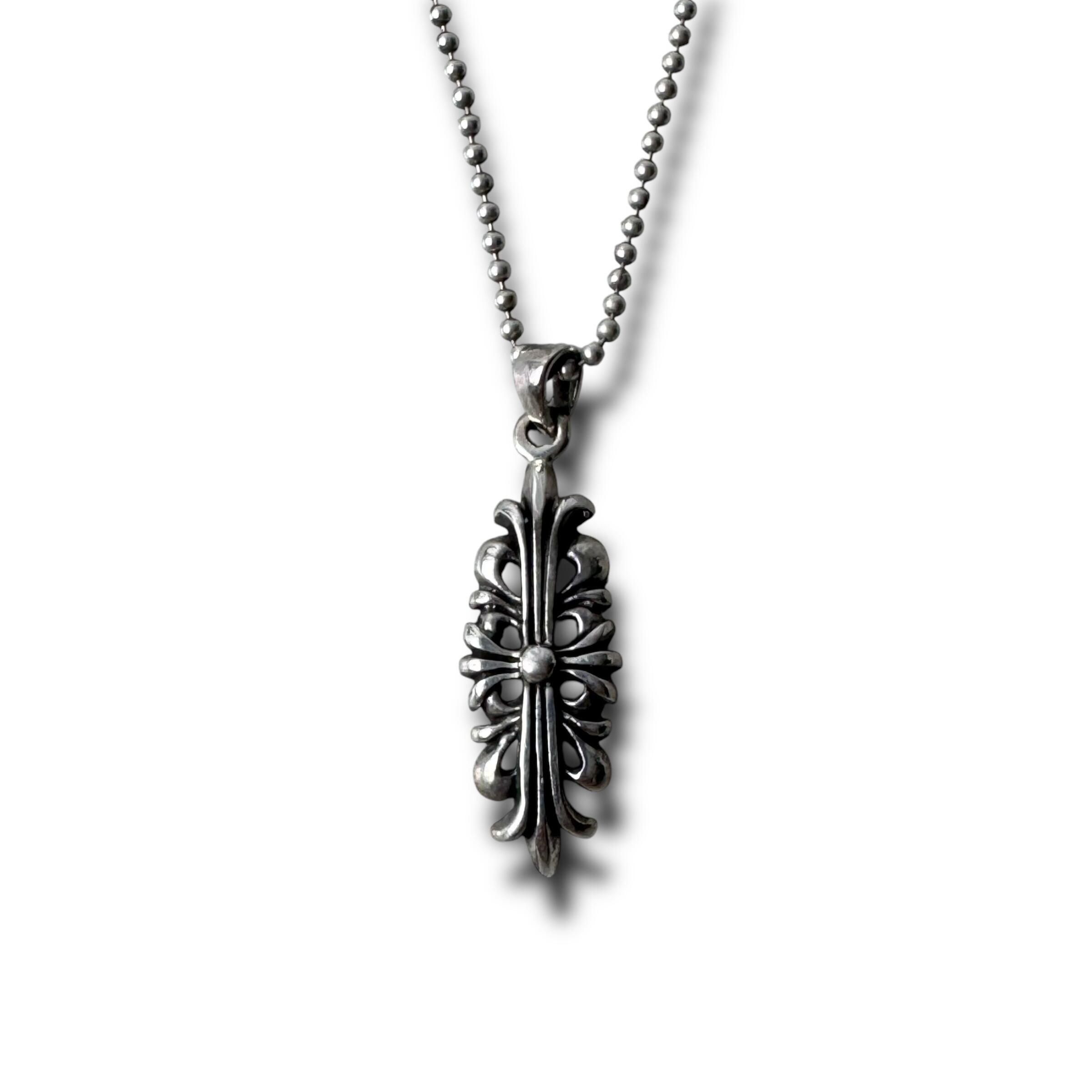 フローラルクロスが目を引くデザインシルバーネックレス✨✨