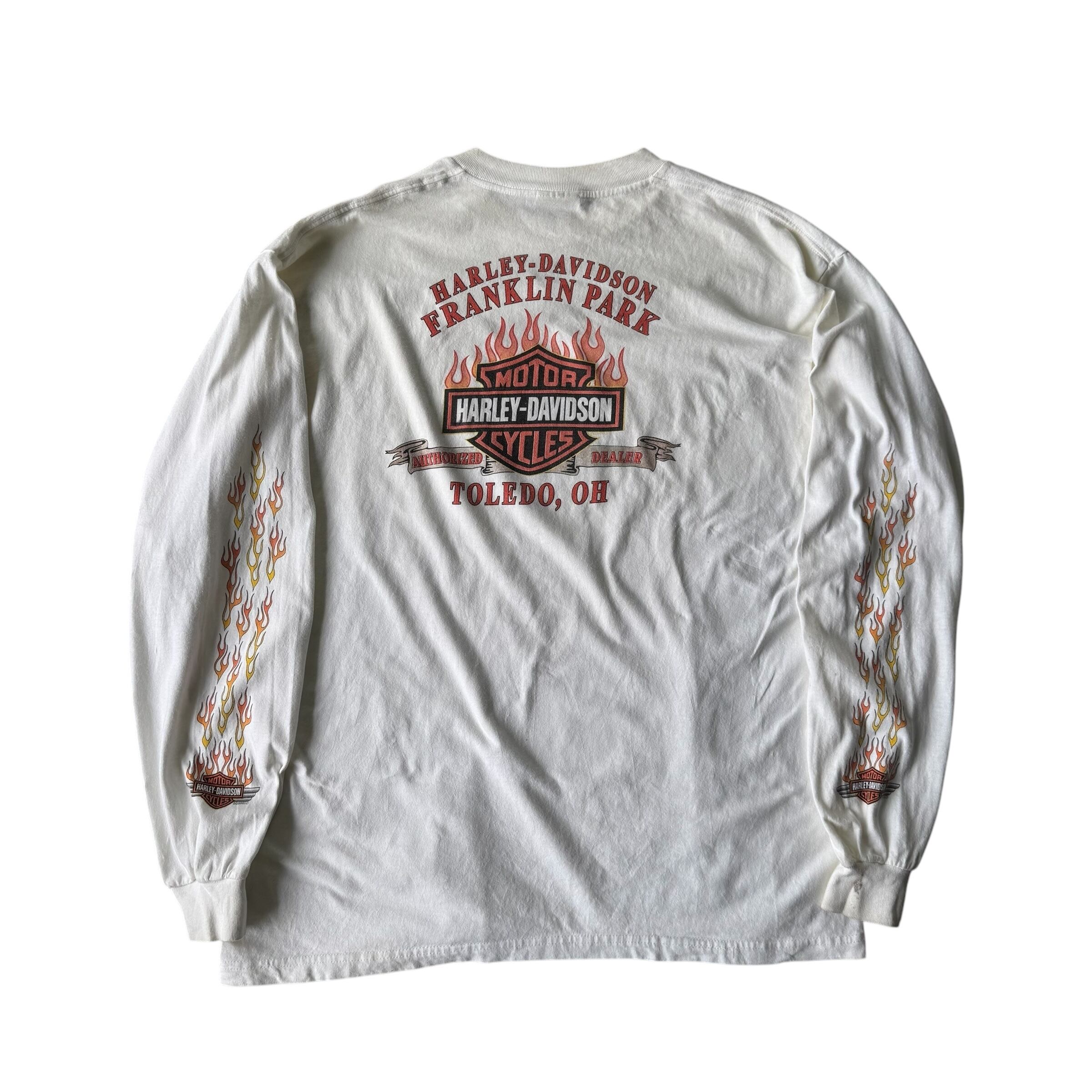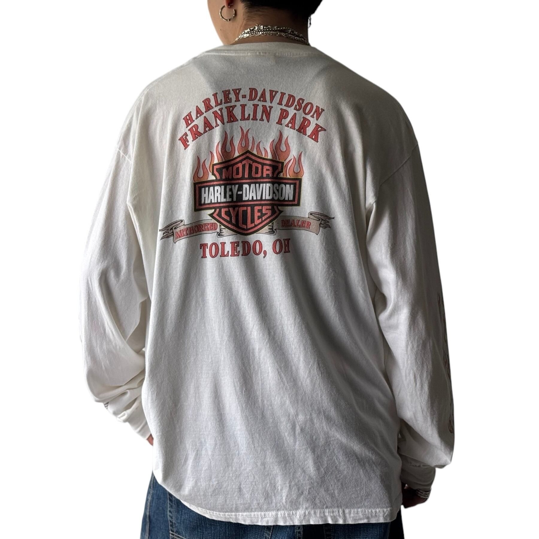 ♾90's HARLEY-DAVIDSON♾ ©️1999H-D fire graphics full design long sleeve sizeXL