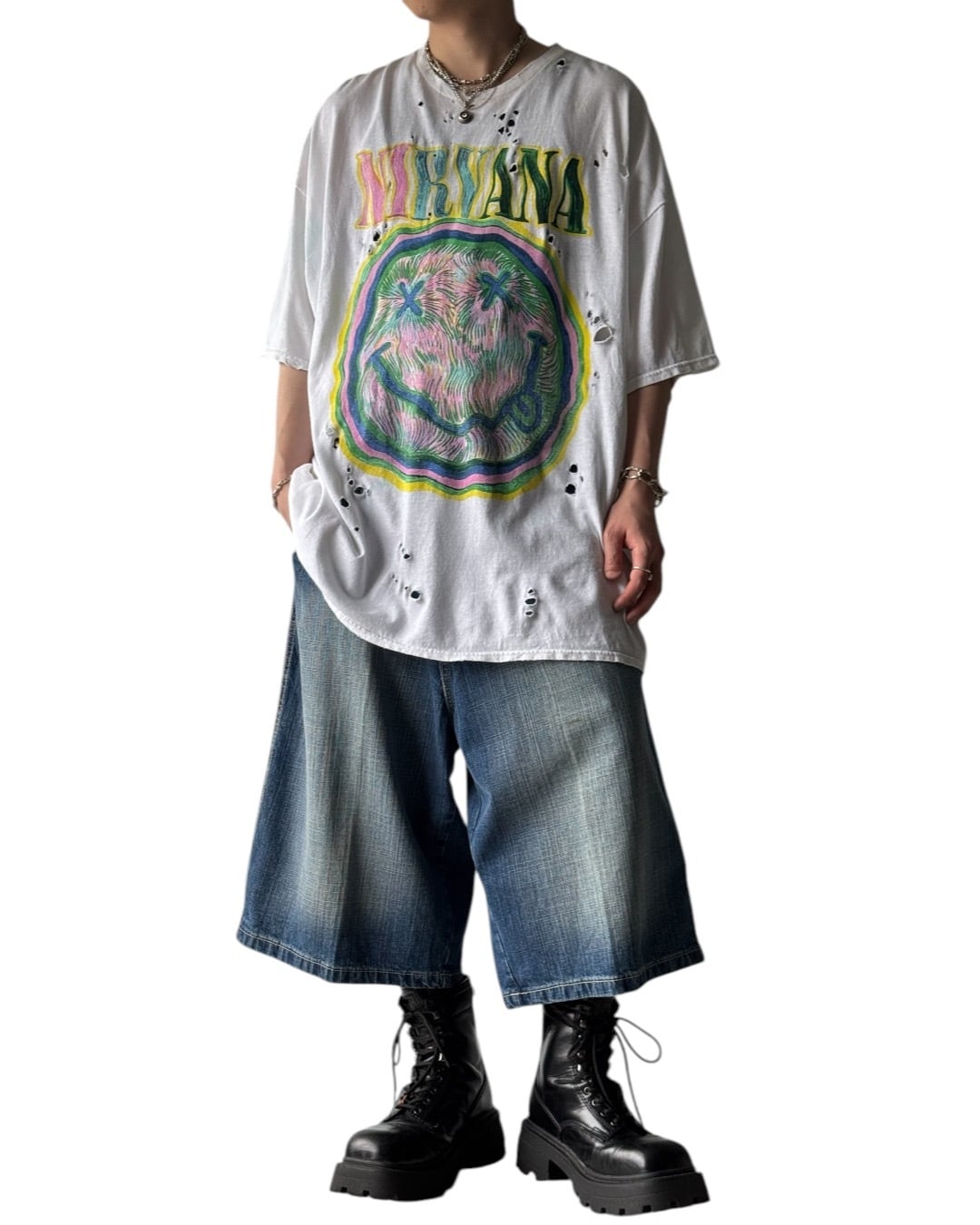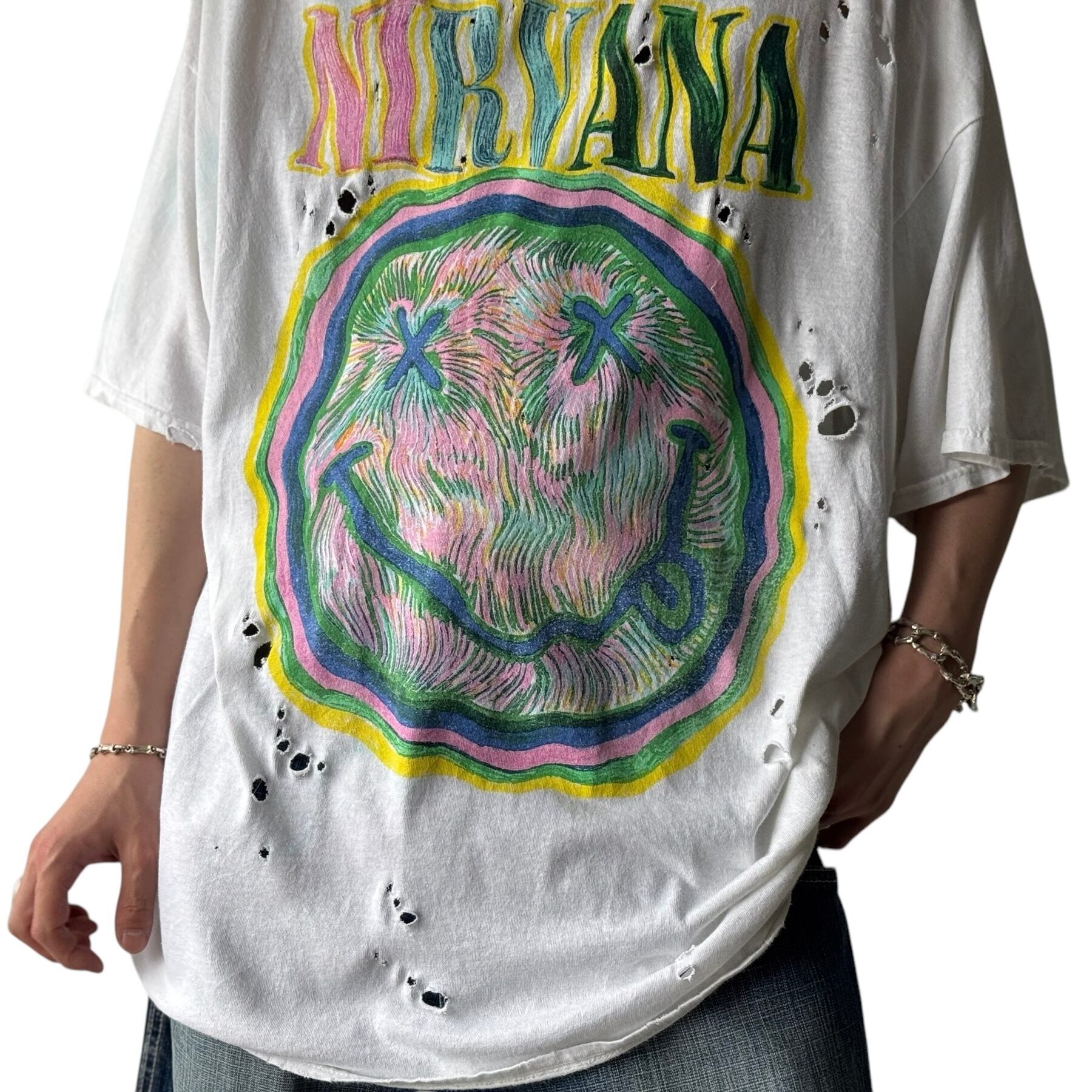 ️️フロントにアートなスマイリーが描かれたNIRVANAといえばのモチーフが映えるデサインクラッシュビッグtee!