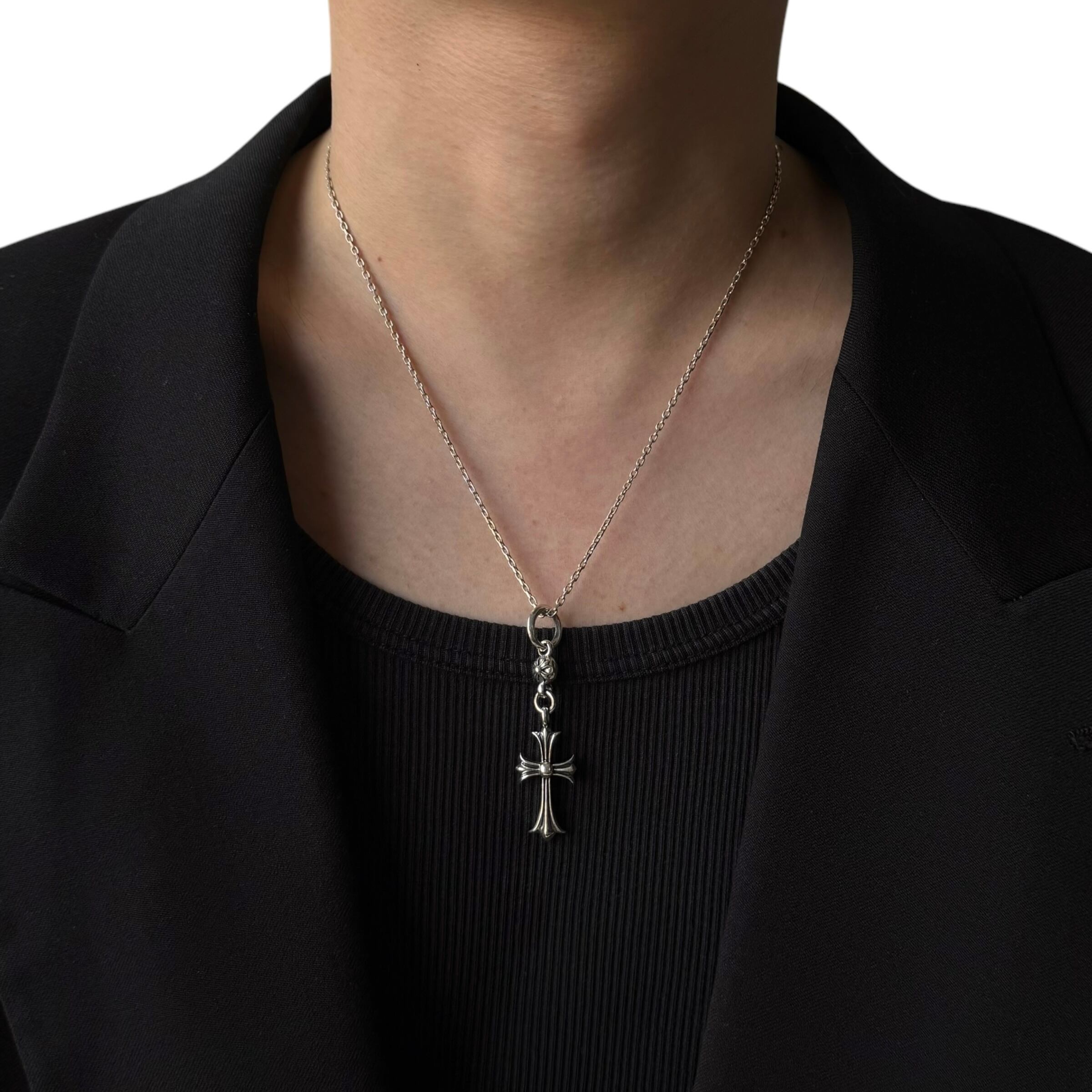 中央にはクロスがチャームとして垂れるスペシャル仕様✨トップの細部までこだわった超クールなヴィンテージシルバーネックレス◎