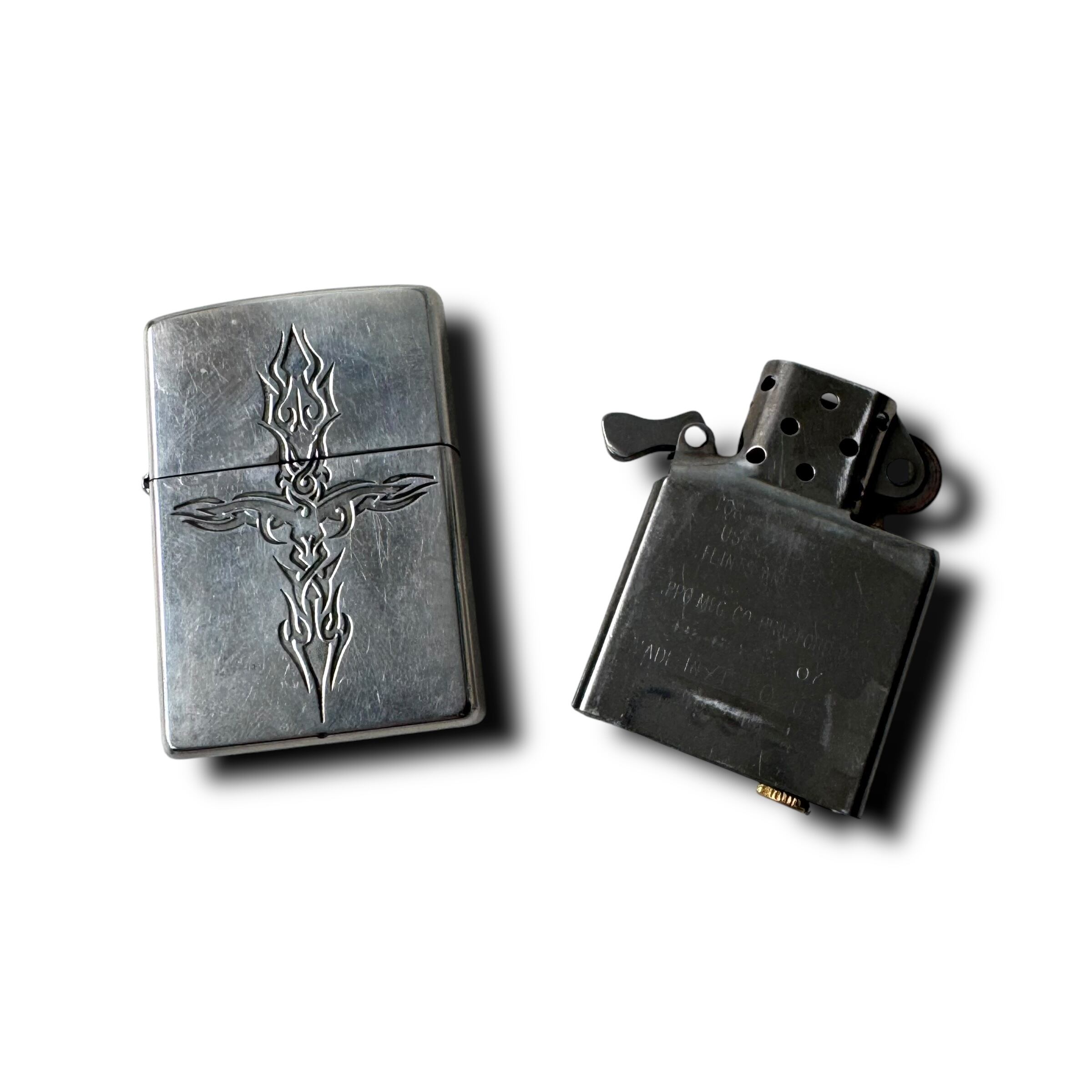 ♾Zippo♾ tribal cross motif design oil lighter MADE IN U.S.A.