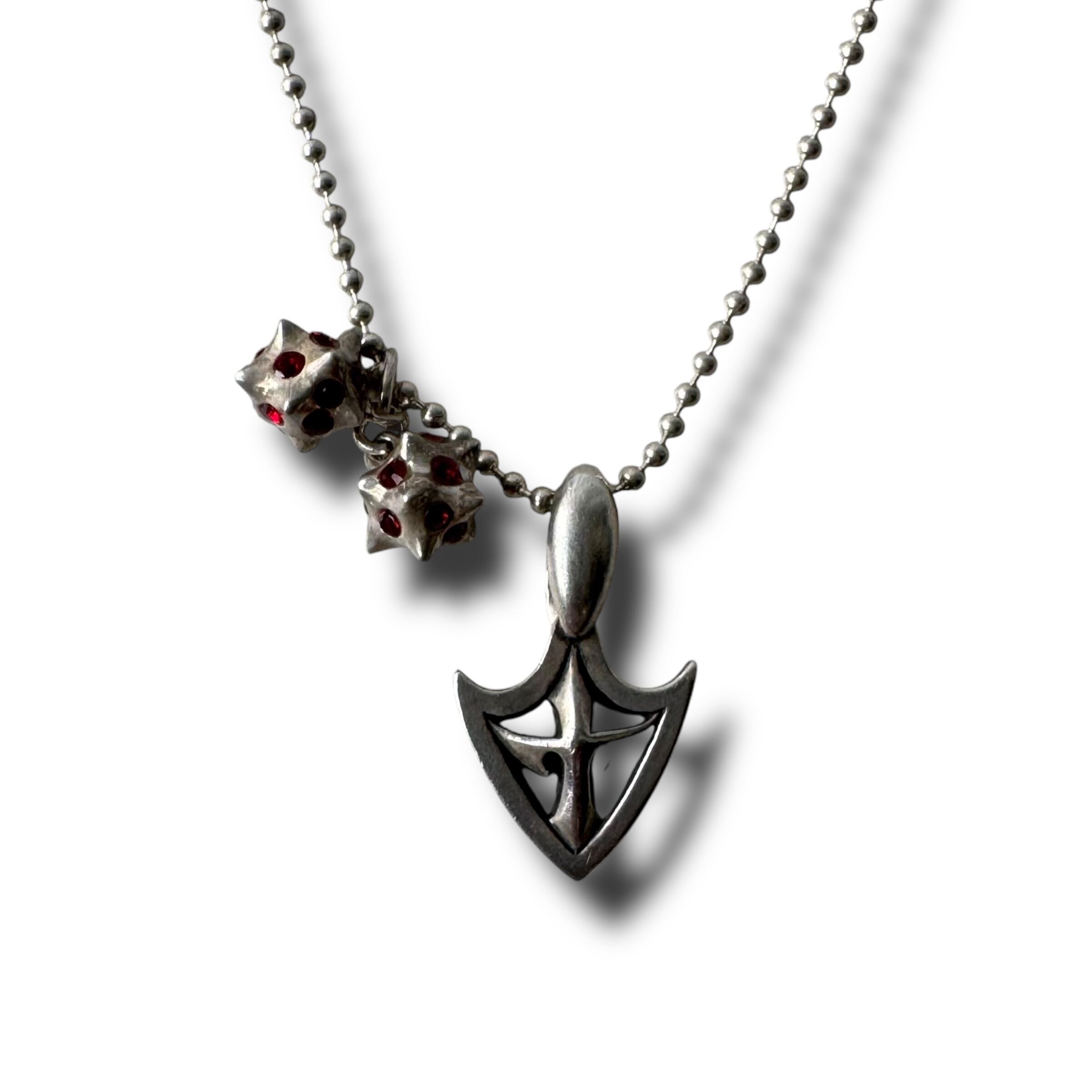 盾のモチーフのトップとこんぺいとうのような可愛らしいチャームが付いたシルバーネックレス✨✨