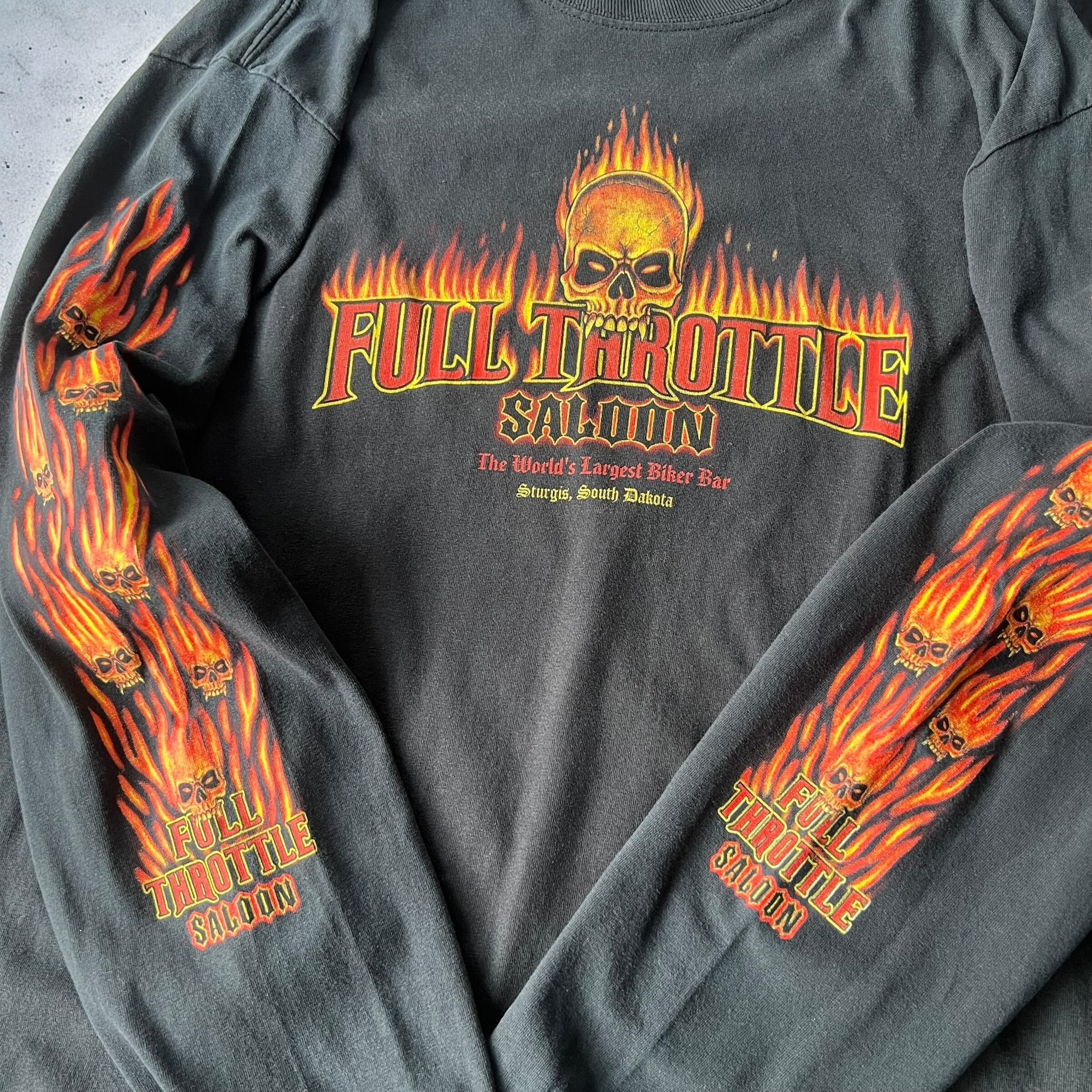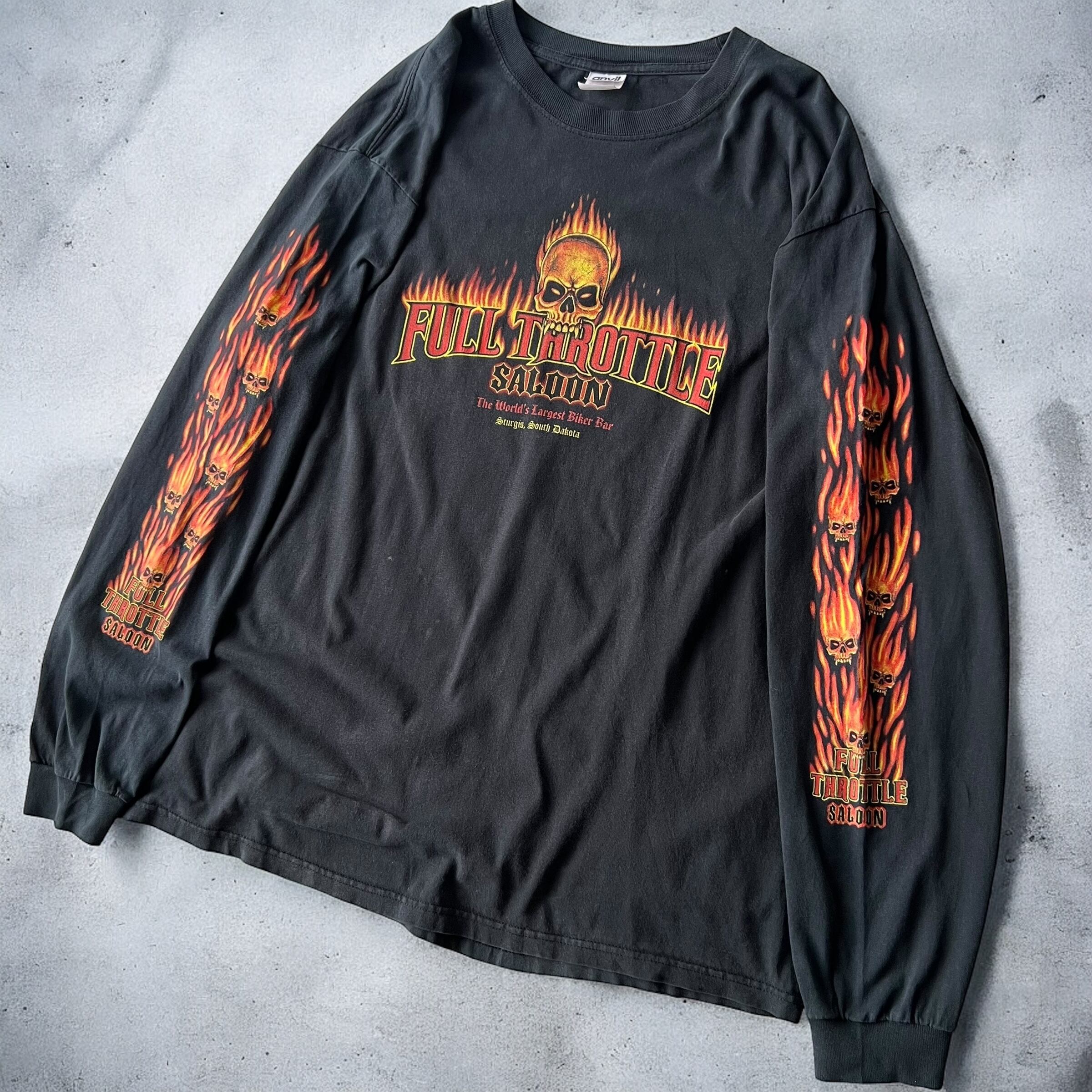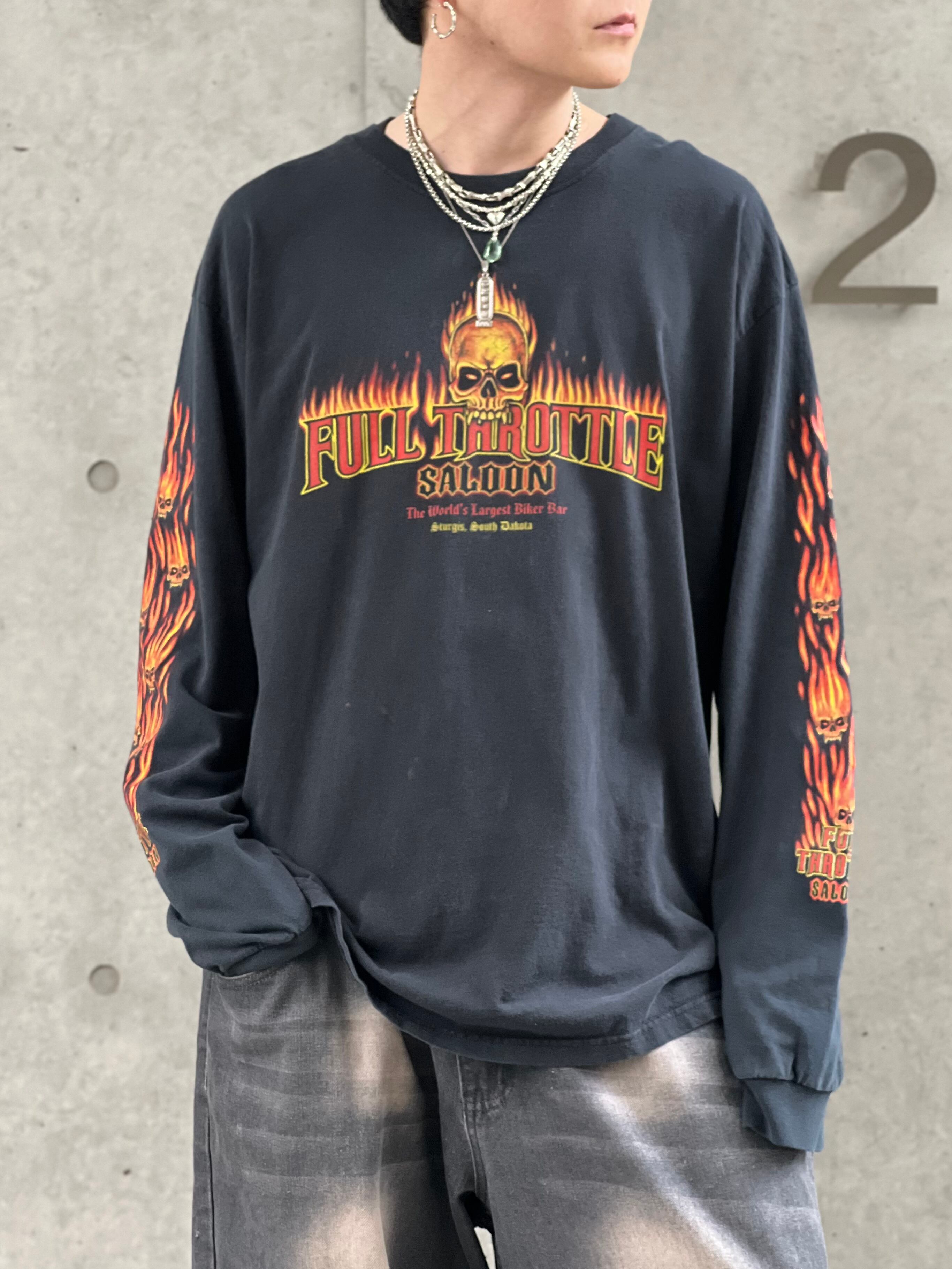 【Full Throttle Saloon】 Flame pattern skull design long sleeve T-shirt