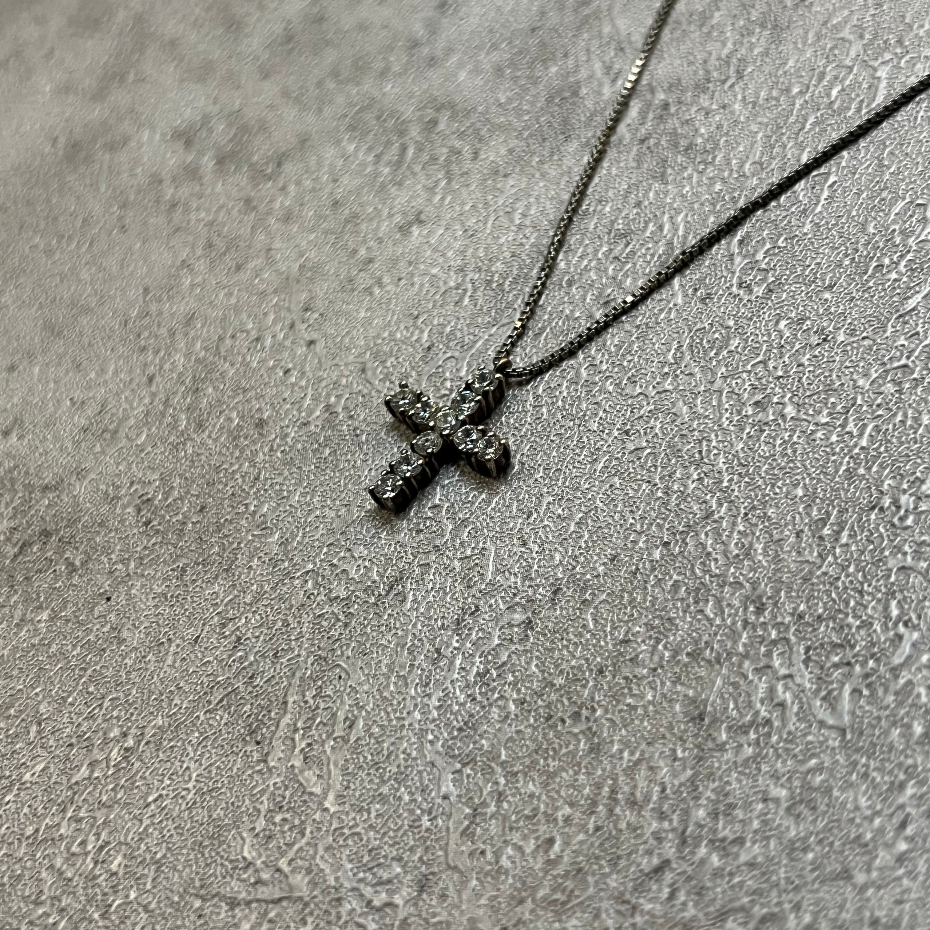 ジルコニアが豪華にデコレーションされた小さなクロスチャームが可愛いデザインネックレス✨️
