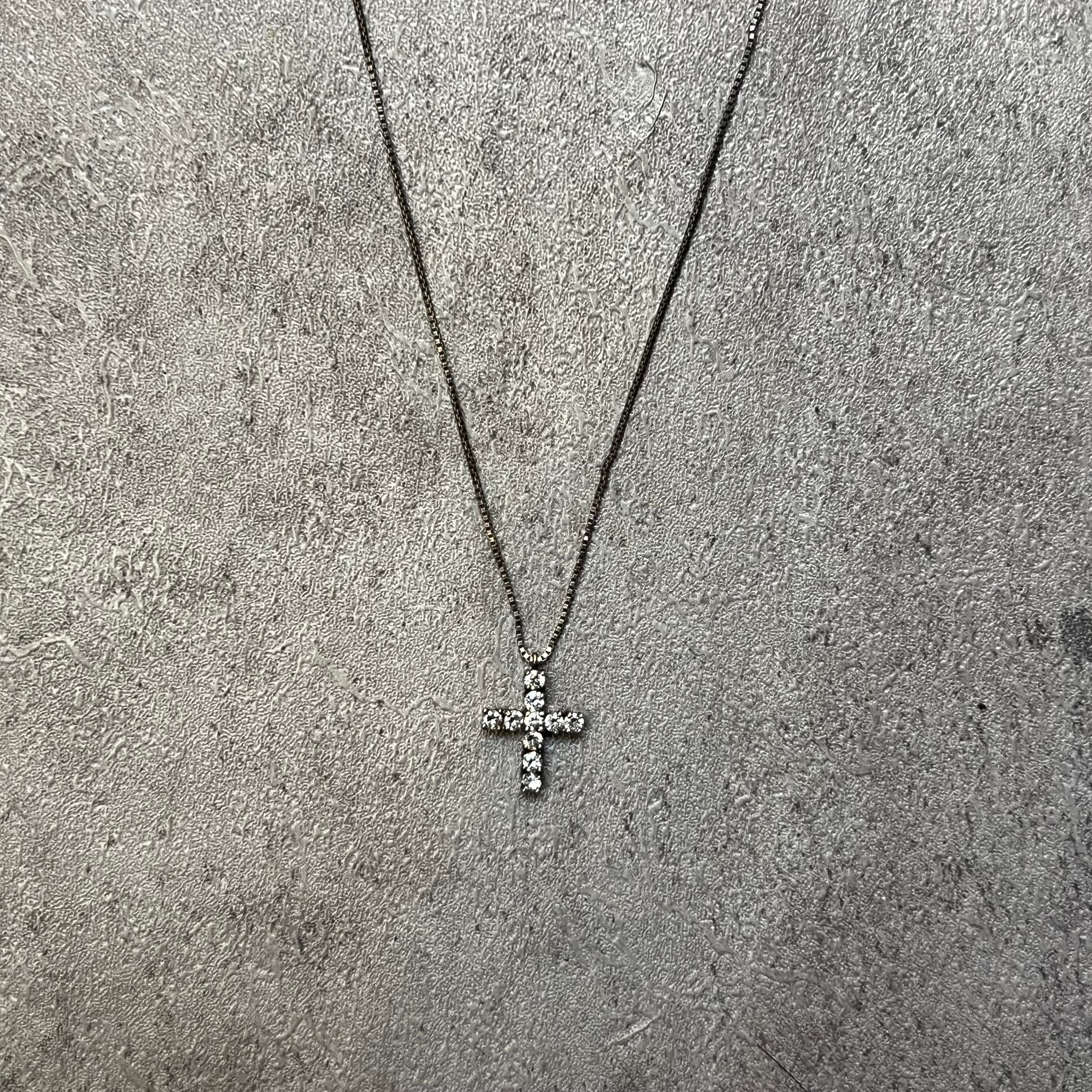 【Sterling silver】 sv925 vintage Zirconia decoration mini cross necklace