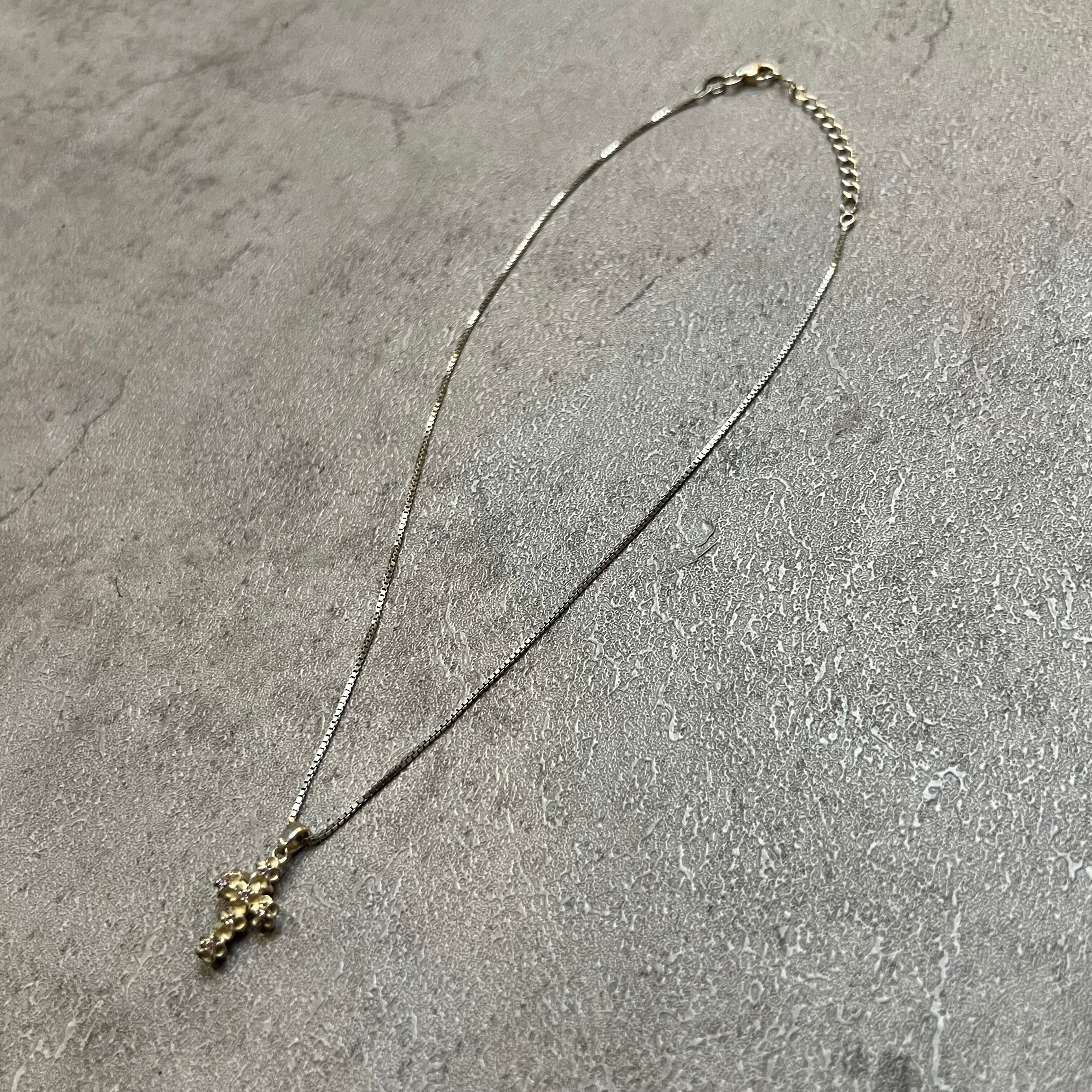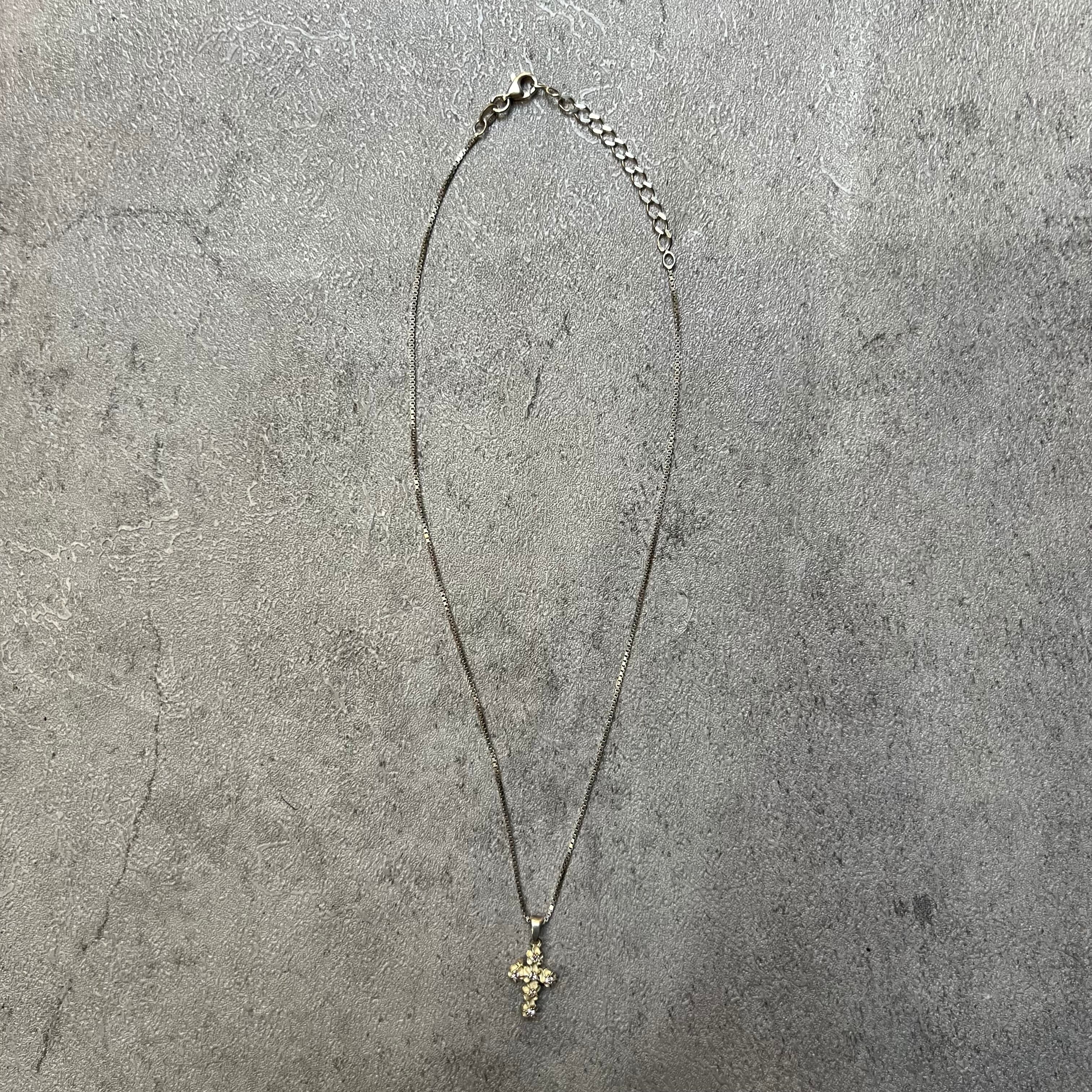 ジルコニアがポイントでデコレーションされた小さなクロスチャームがめちゃくちゃ可愛いデザインネックレス✨️
