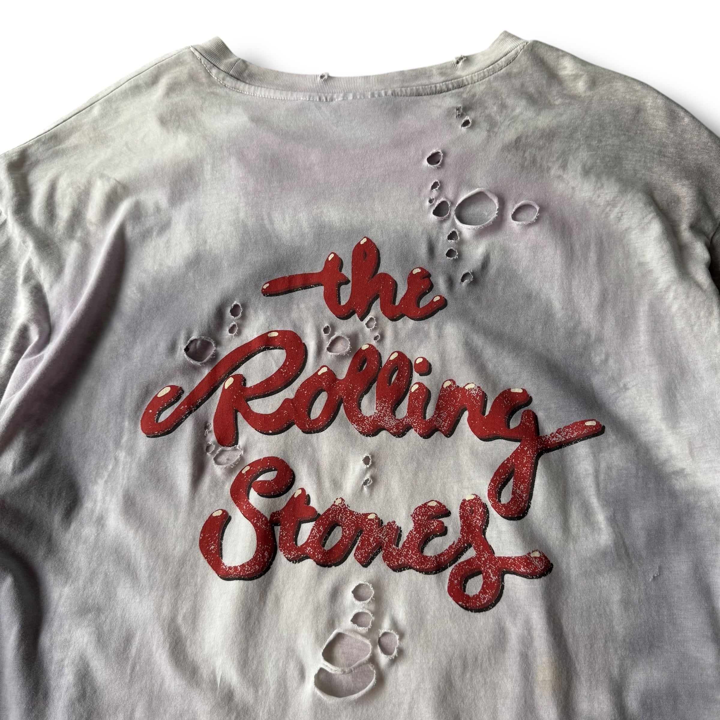 淡く薄いタイダイ染めが施されたボディのフロントにはインパクト抜群なバンドを象徴するベロのビッグモチーフ◎
