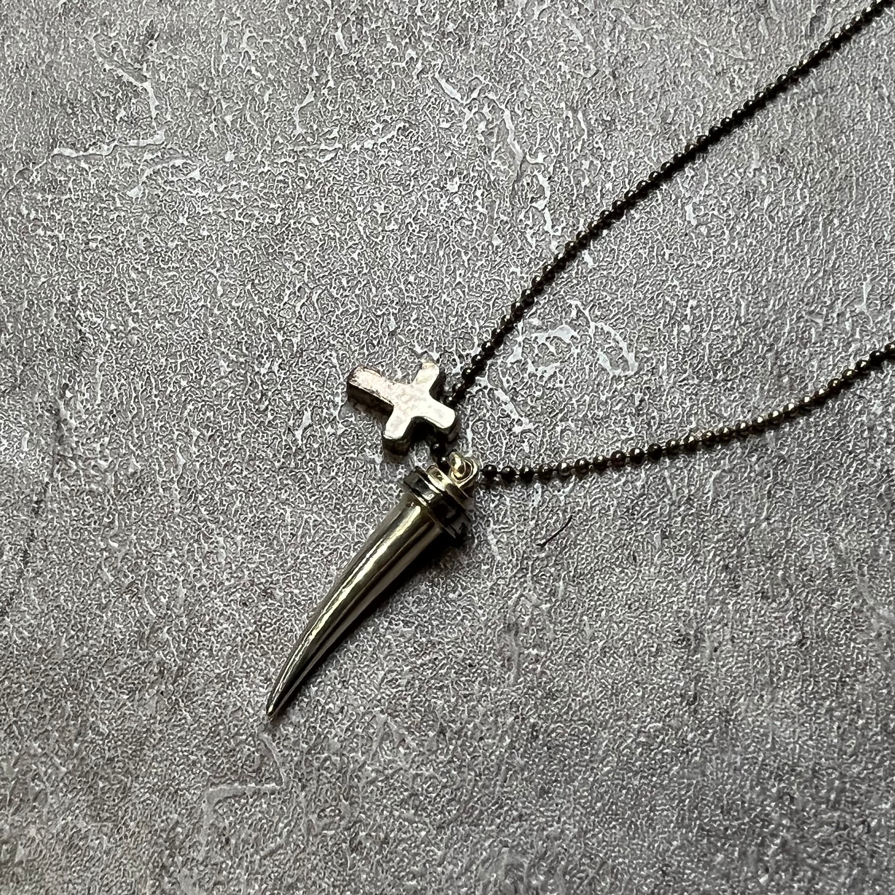 【Sterling silver】 "sv925 vintage" fang/cross double top design necklace