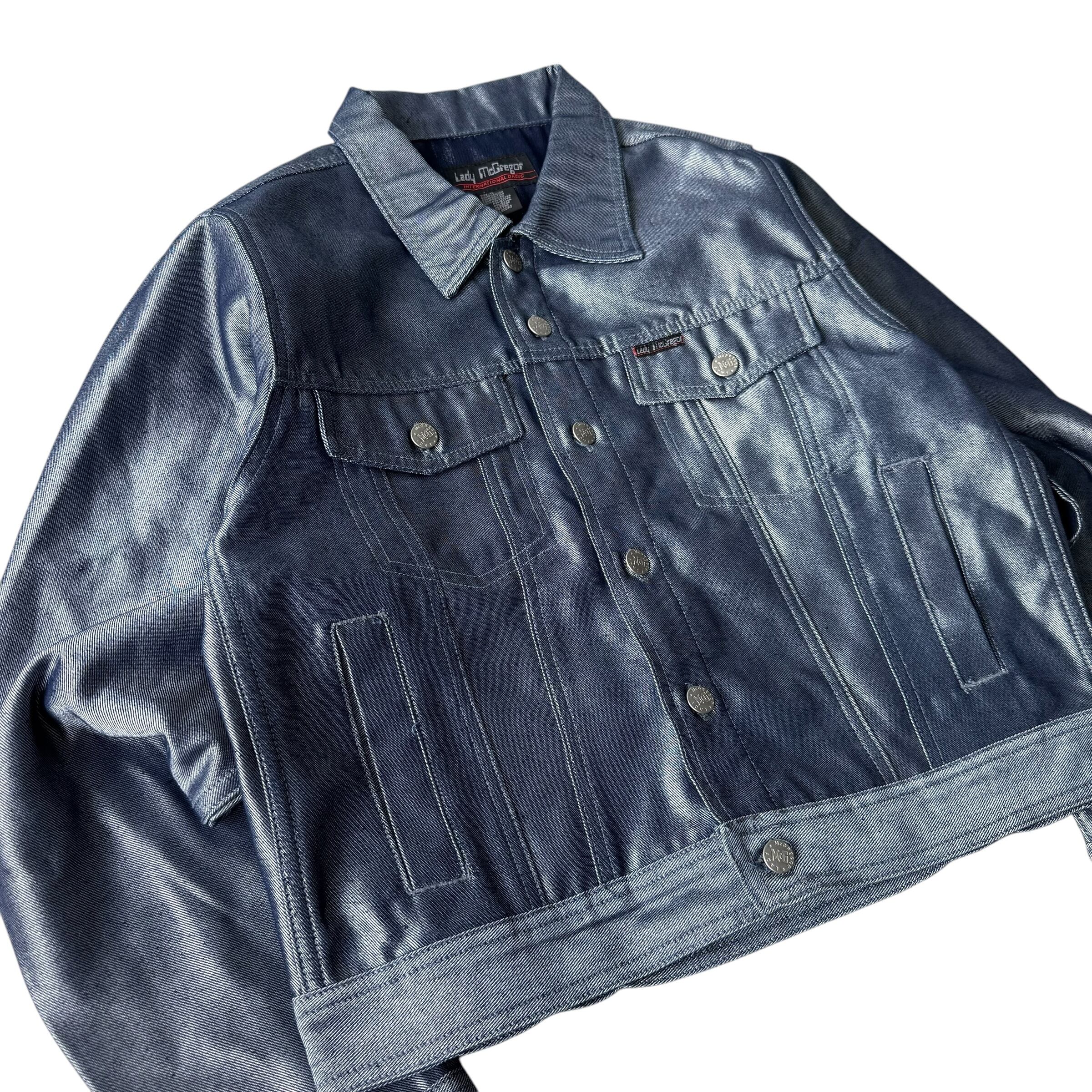 ♾Lady McGregor♾ design shiny silver cropped denim jacket sizeXL