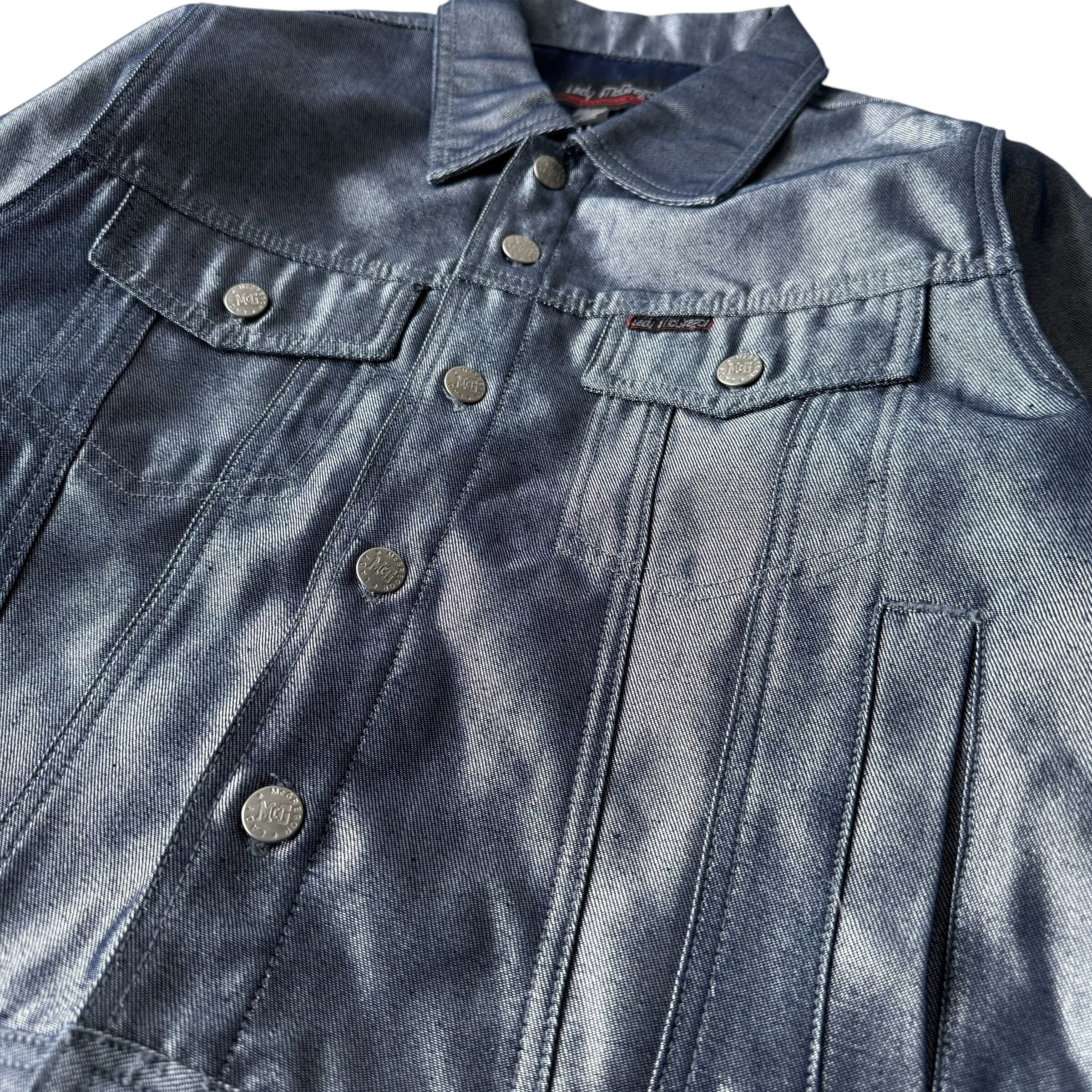 ギラッと目を引くシャイニーシルバーのデザインデニムジャケットの入荷‼️
