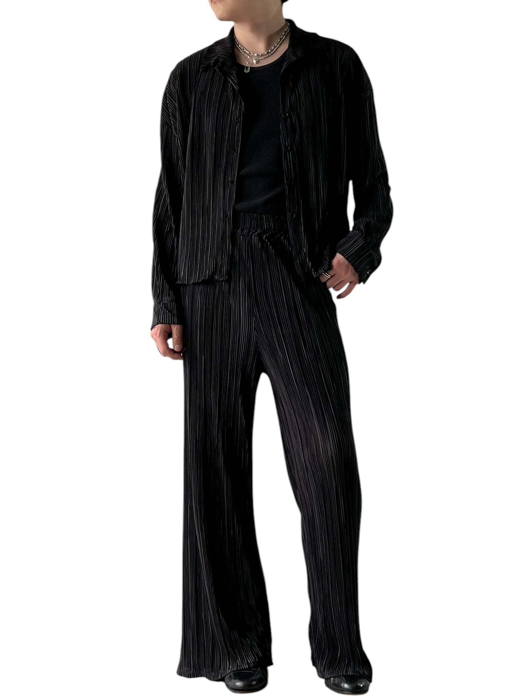 Black pleated shirt and pants setup