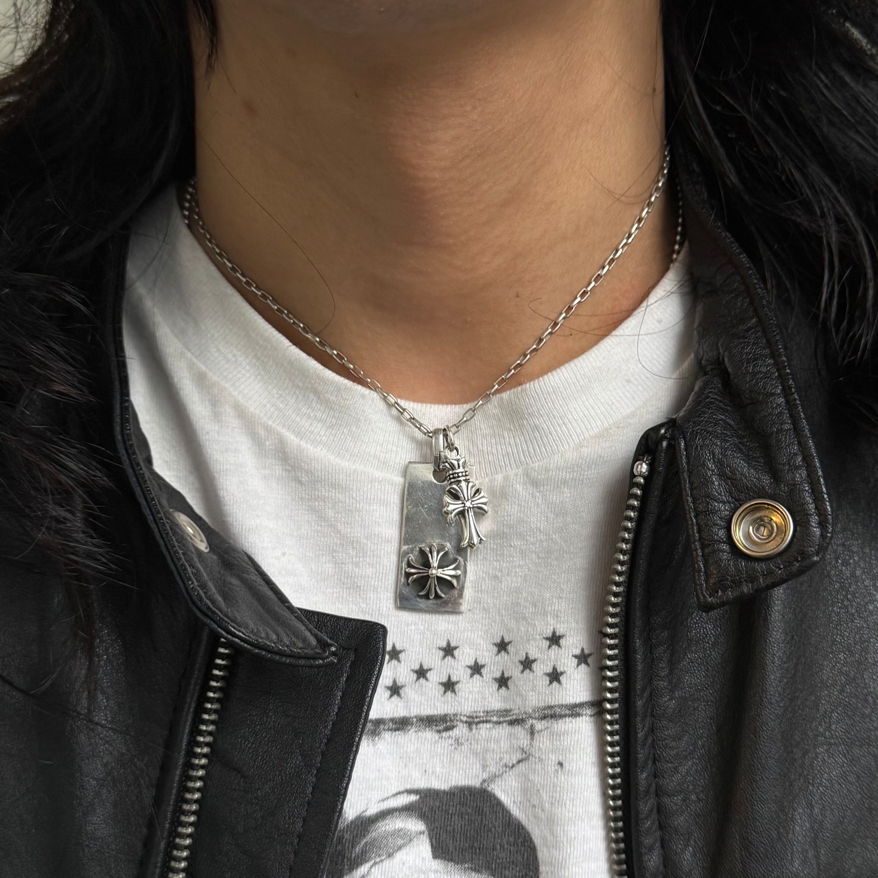 ♾vintage sv jewelry♾ w top cross motif design plate necklace sv925