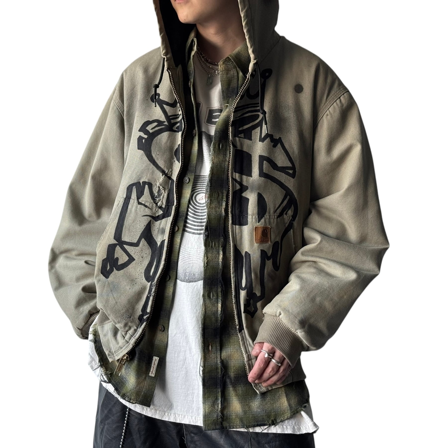 ワークウェアと言えばの印象強めなライトベージュが雰囲気抜群で両面にハンドペイントによるカスタムを施す事により無二で存在感あるデザインが目を惹く仕上がり✨️