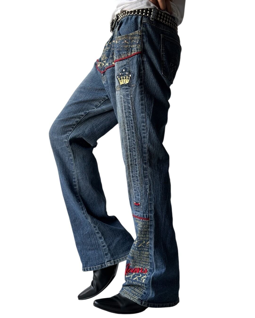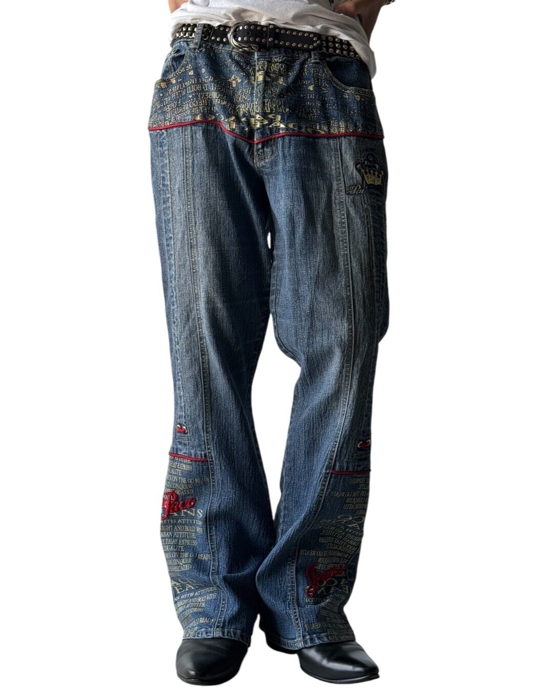 テキストロゴのスウィッチングにドローコードで絞れる仕様がギャういデザインのフレアデニムパンツ‼️