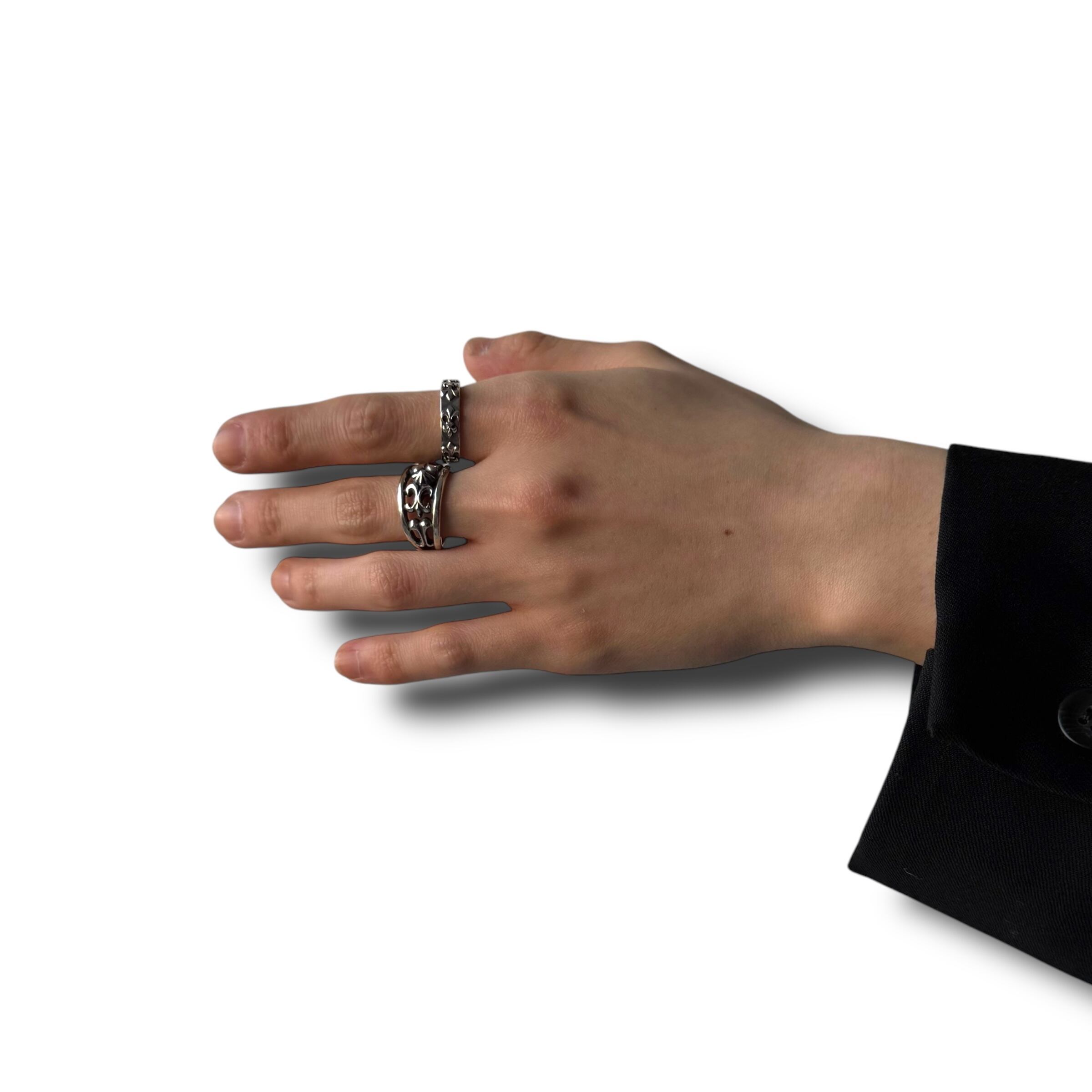 ️️️立体感あるクロス&リリーモチーフリング