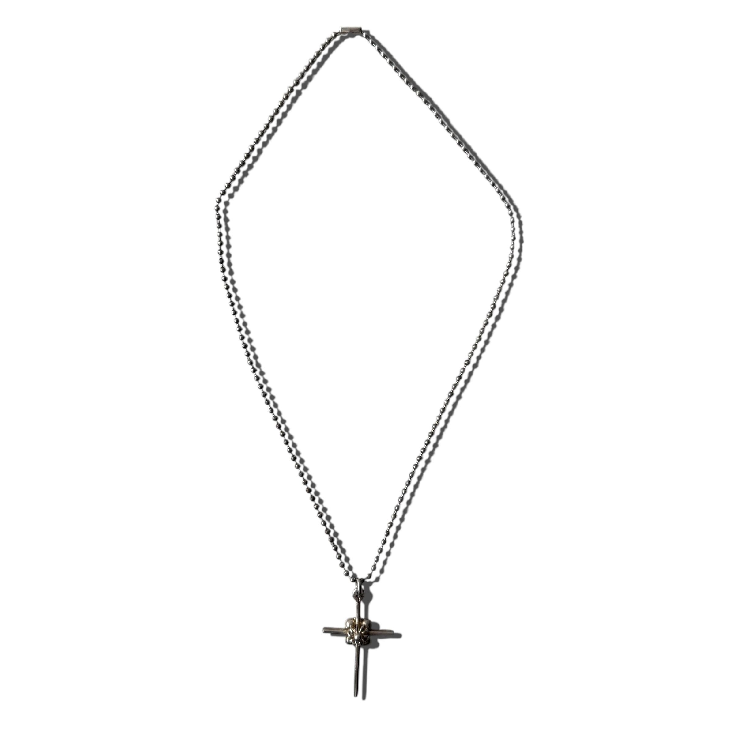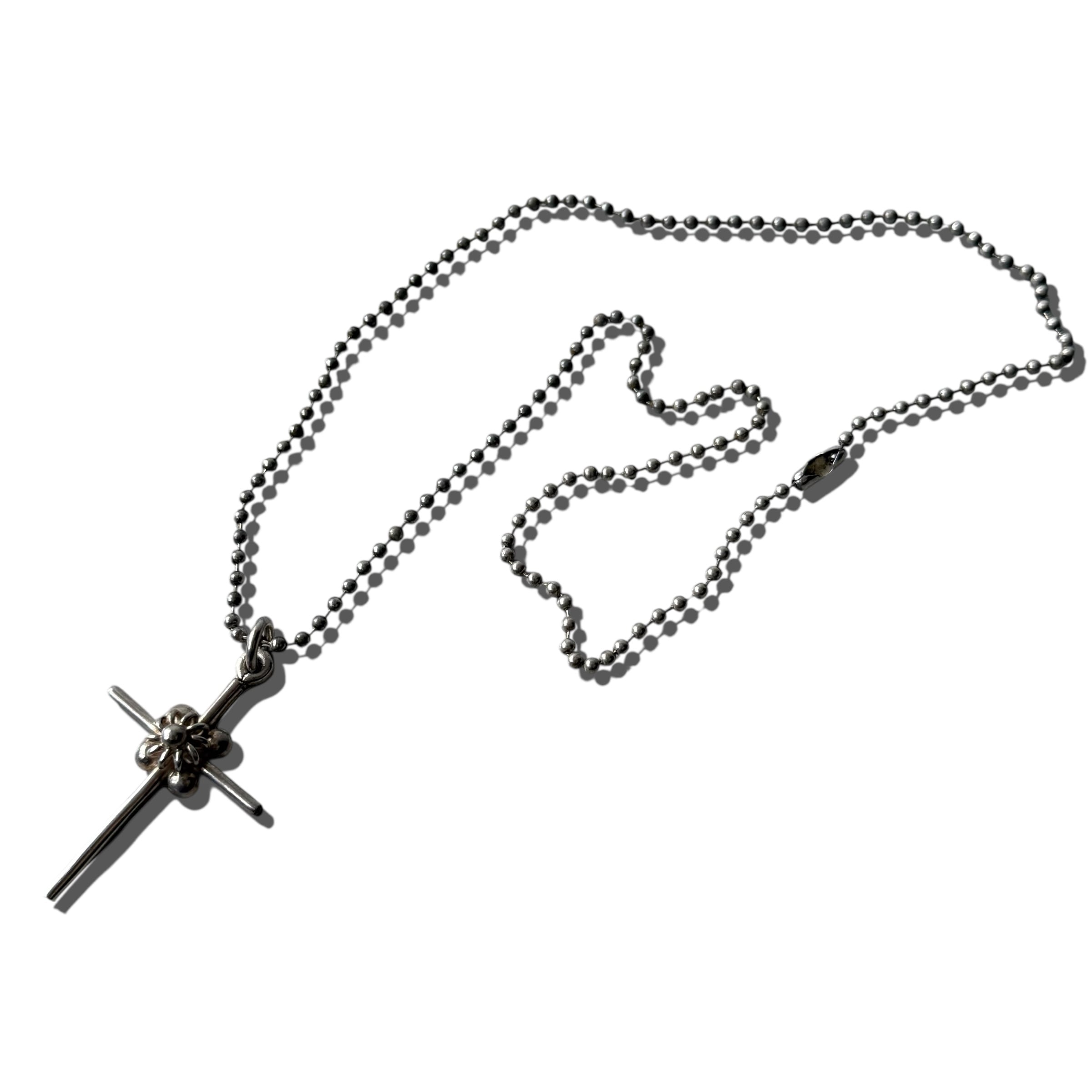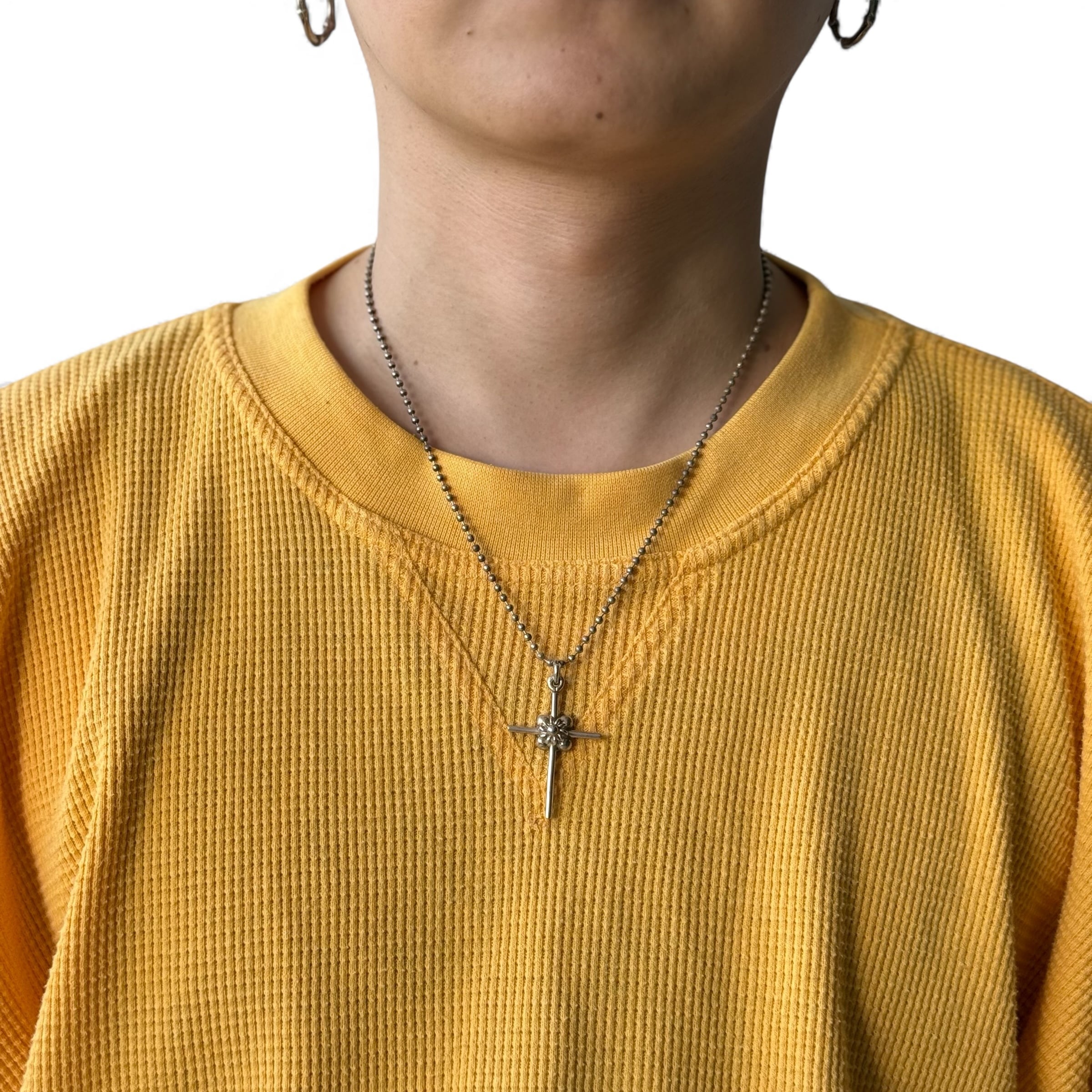 クロスのセンターにポイントのある変わった形のクロスがインパクト抜群なデザインシルバーネックレス。