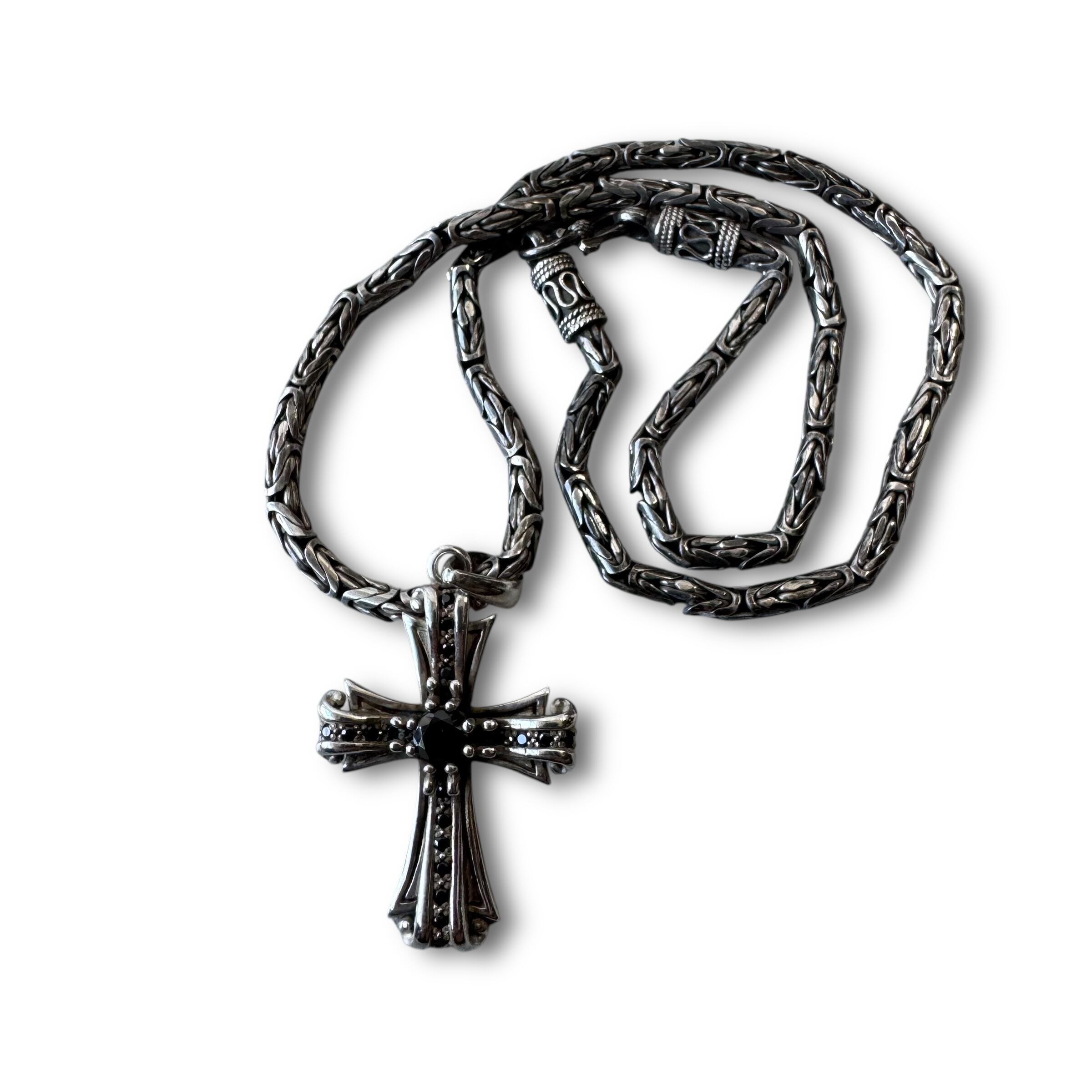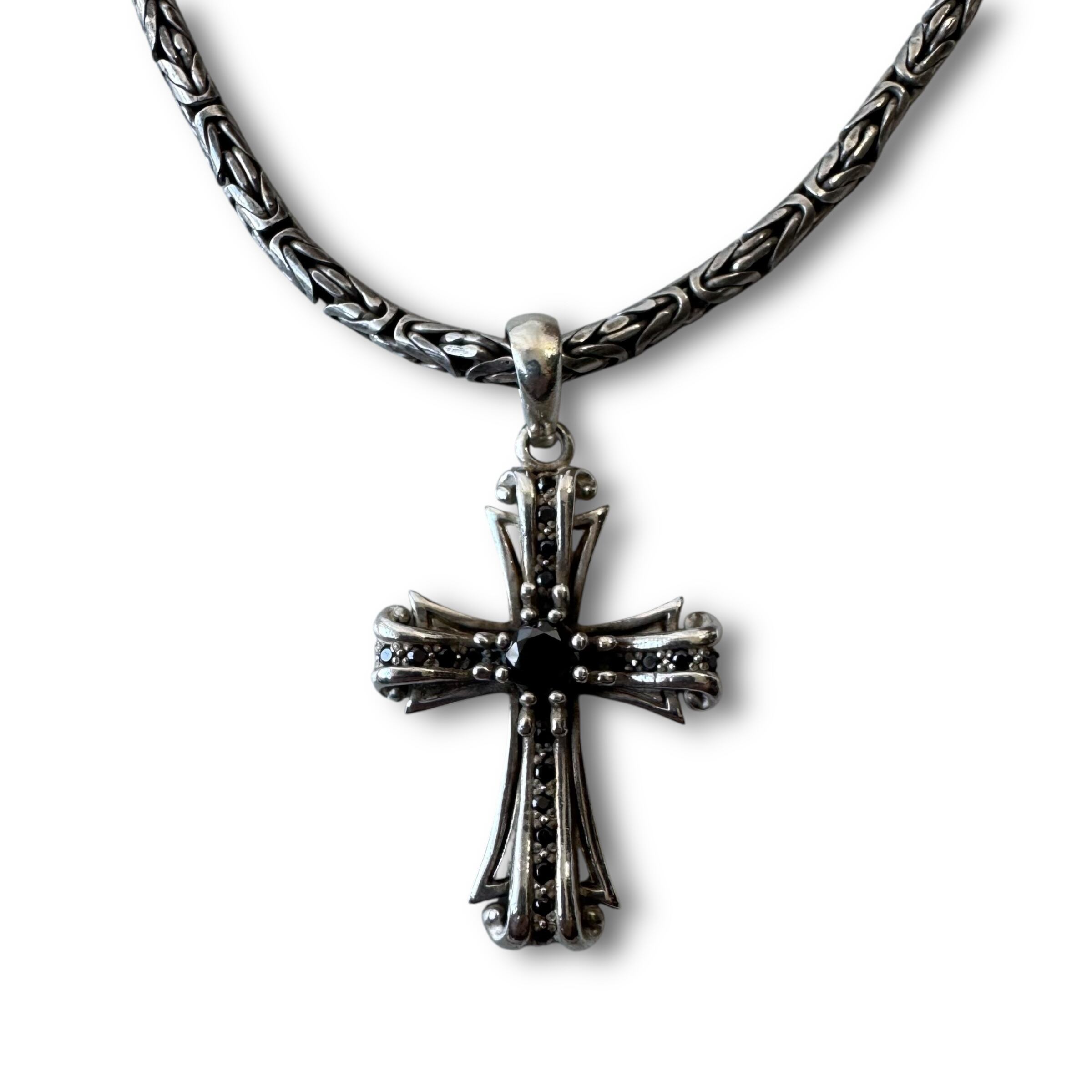 ‼️Special‼️♾vintage sv jewelry♾ Stone set Cross design necklace sv925 ・