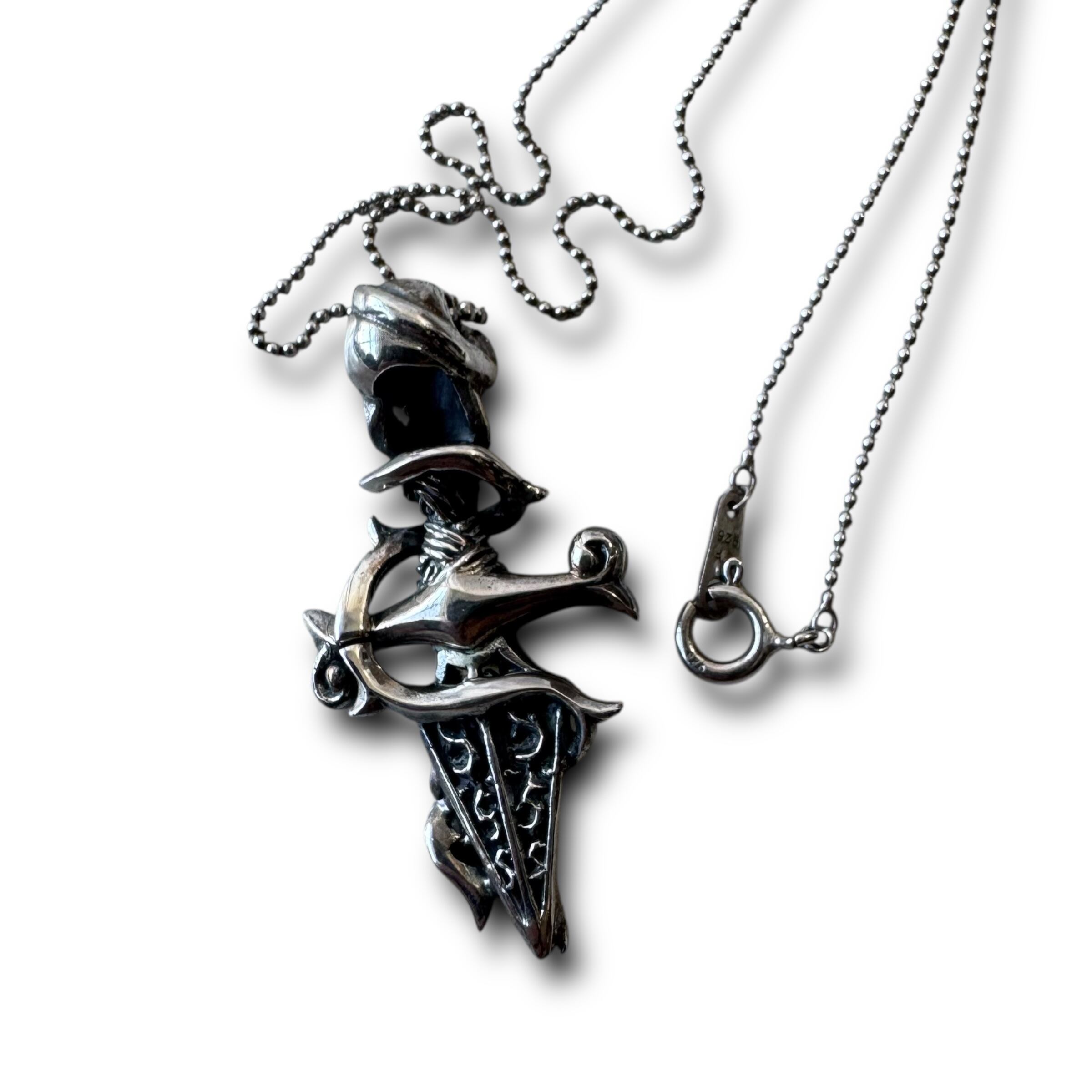 ♾vintage silver jewelry♾ blade × skull motif cz design necklace sv925