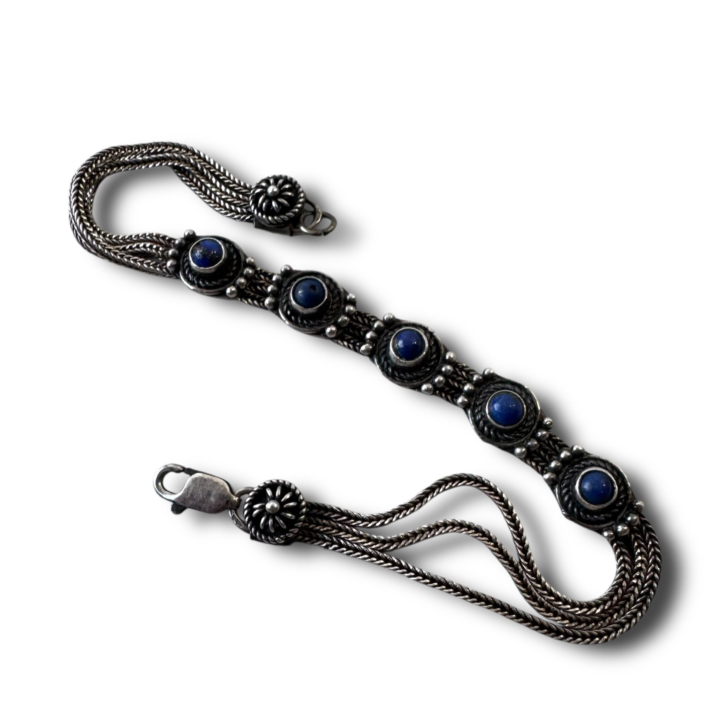 ♾vintage silver jewelry♾ blue stone combination three chains design vtg bracelet sv925
