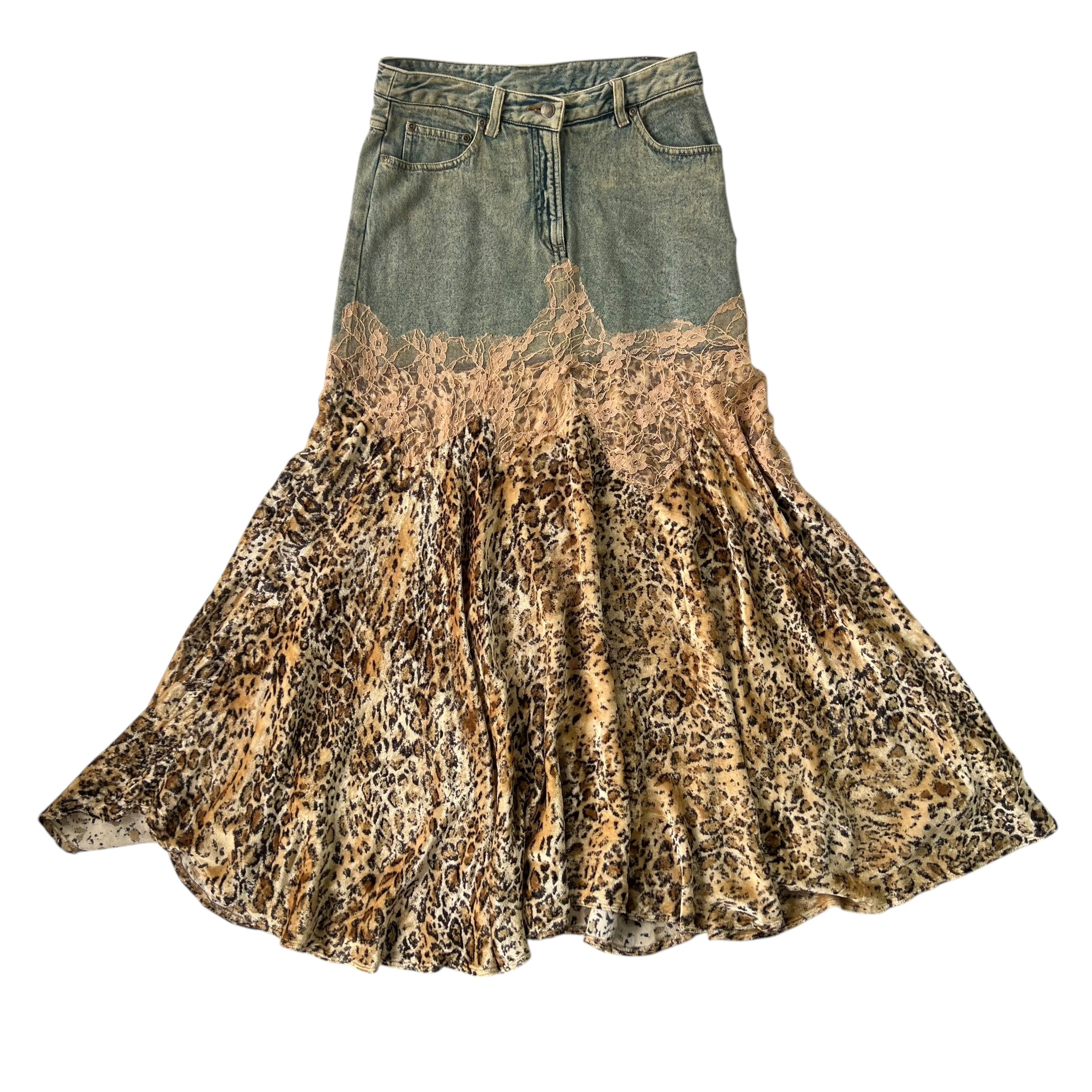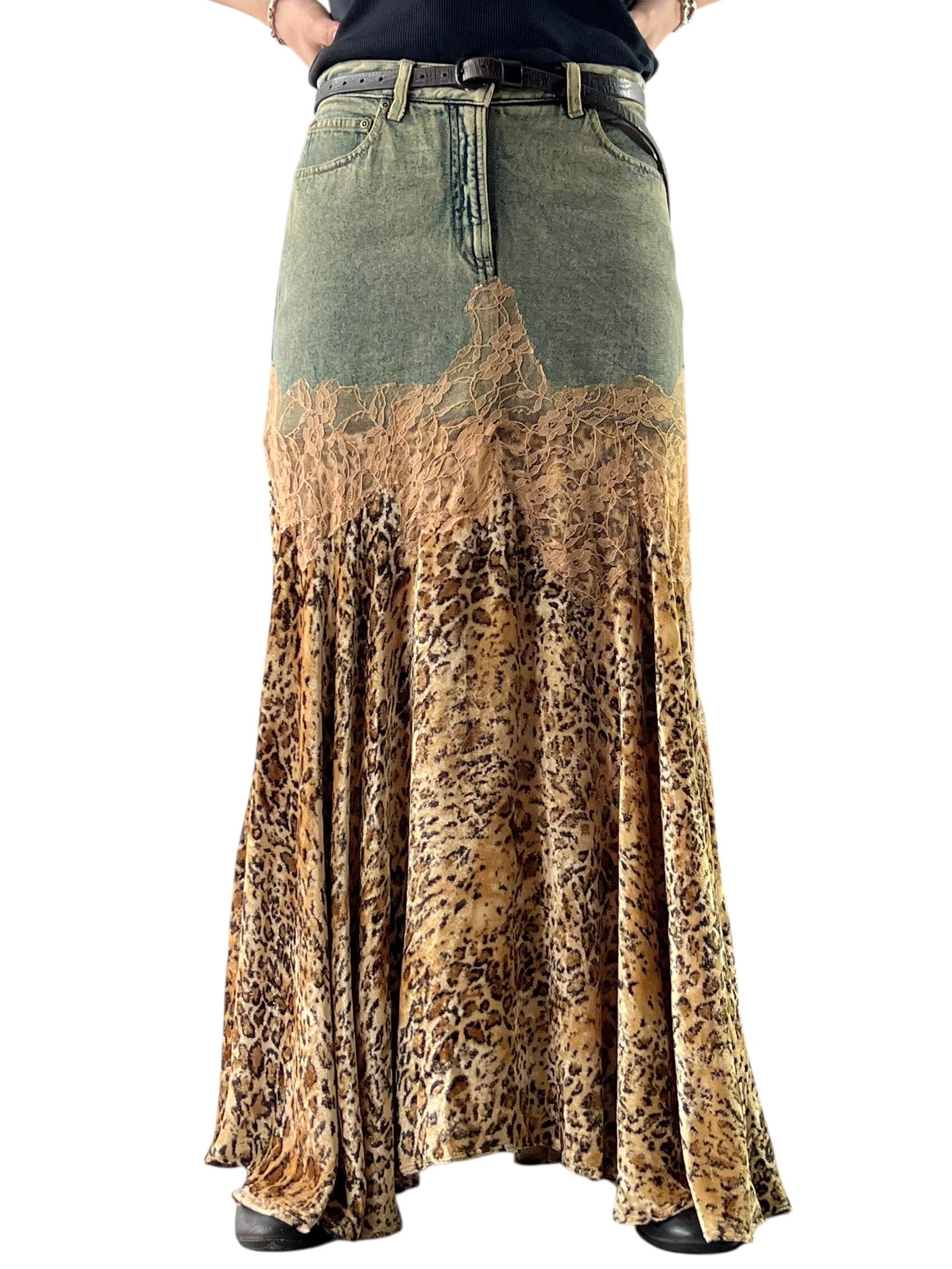 デニムとベルベットの切り替えが美しいデザインロングスカート✨✨