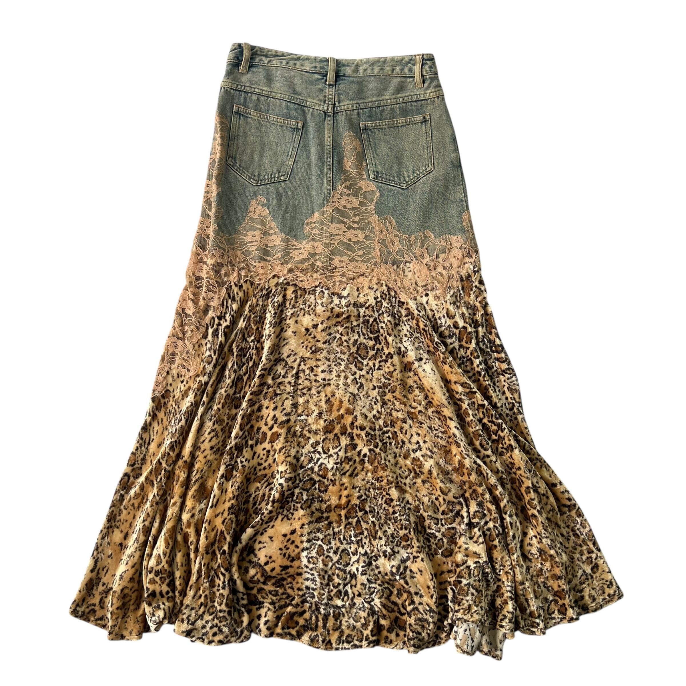【NEW PORT NEWS jean logy】Velvet and lace docking design denim skirt