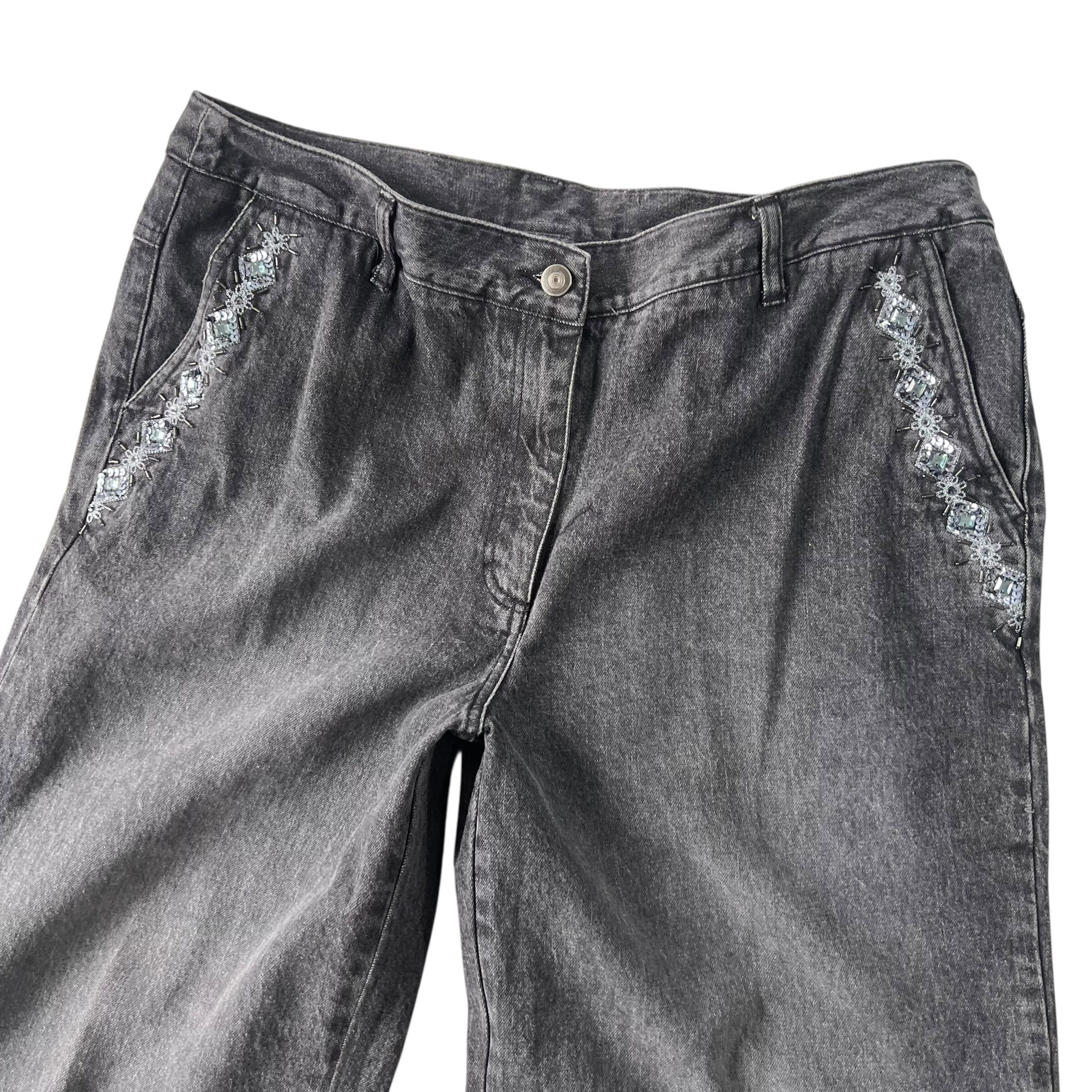 ポケット部分にビーズがデコレーションされたポイントの効いたブラックデニムパンツ!!