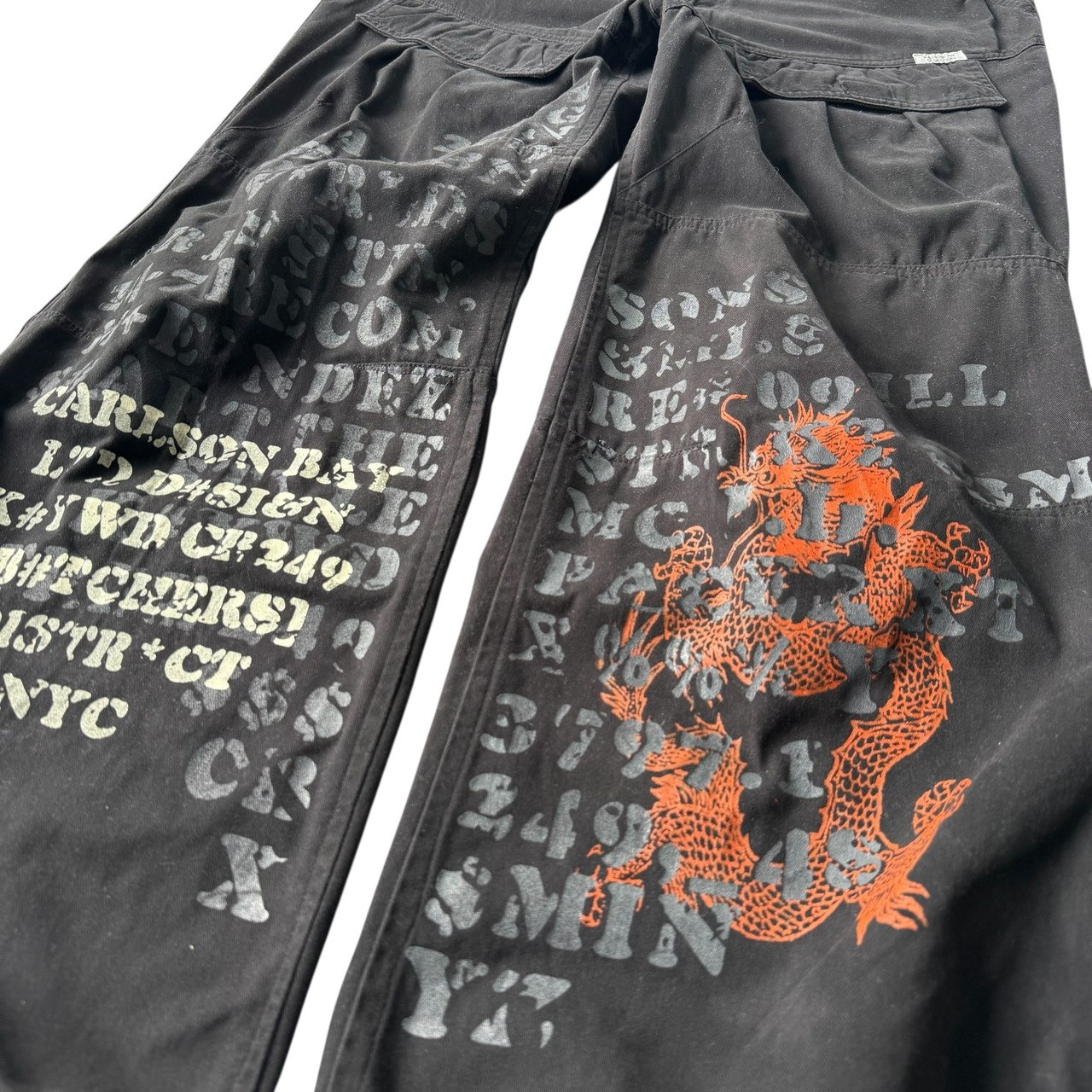 doragon motif text logo design wide pants