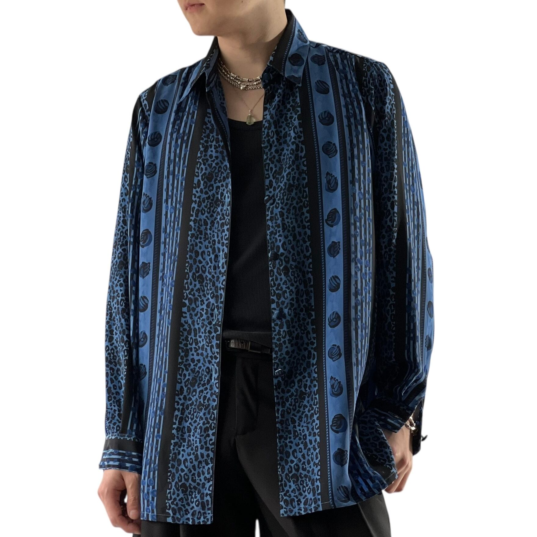 【LIZ BAKER】Leopard stripe pattern design shirt
